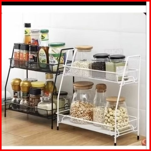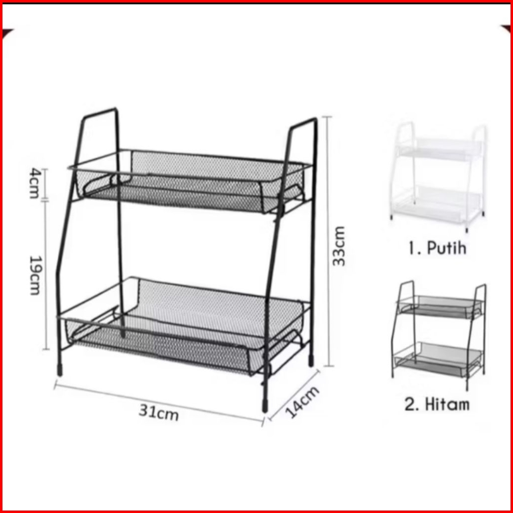Rak Kosmetik Jaring 2susun Serba Guna Rak Bumbu Dapur Jaring Besi Kuat Anti Karat Dengan Cat Powder Coating Dan Kap Lamp