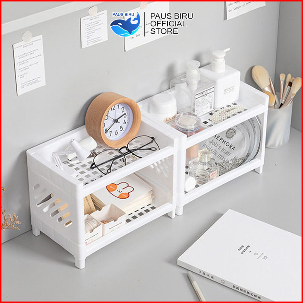 Paus Biru - Rak Serbaguna Portable Murah Meja Plastik Kosmetik Mini Rak Meja Kecil Multifungsi
