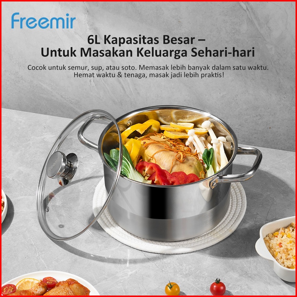 Special Freemir Panci Sup Stainless Steel 304 Double Bottom 26cm Goreng Rebus Premium 0-coating