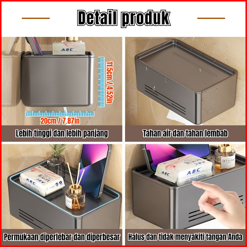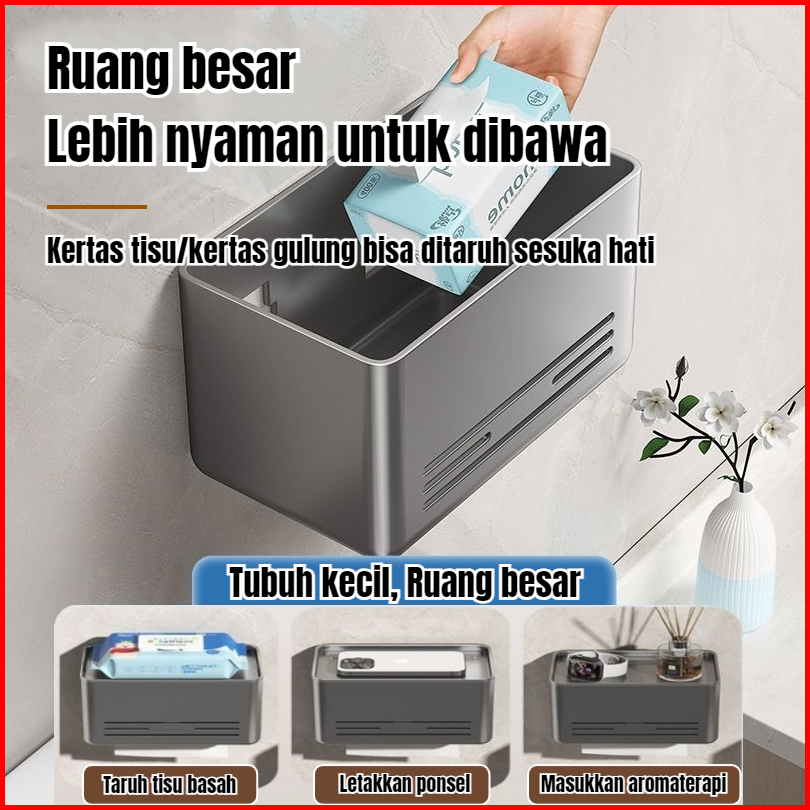 Tempat Tisu Dinding Tanpa Lubang Rak Tisu Kamar Mandi Tempat Penyimpanan Ponsel Aluminium Rack Tissue Holder