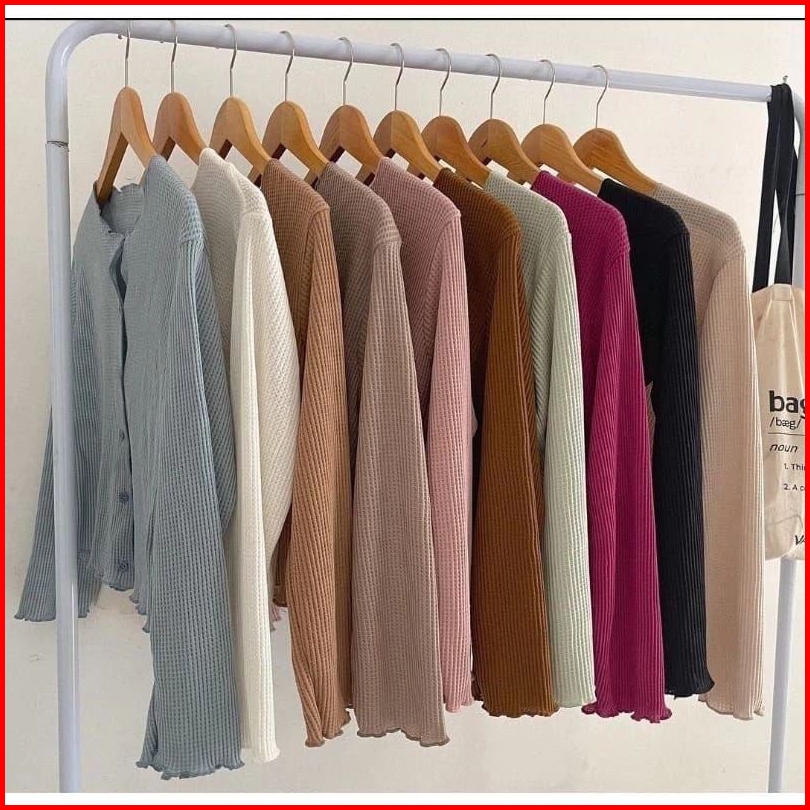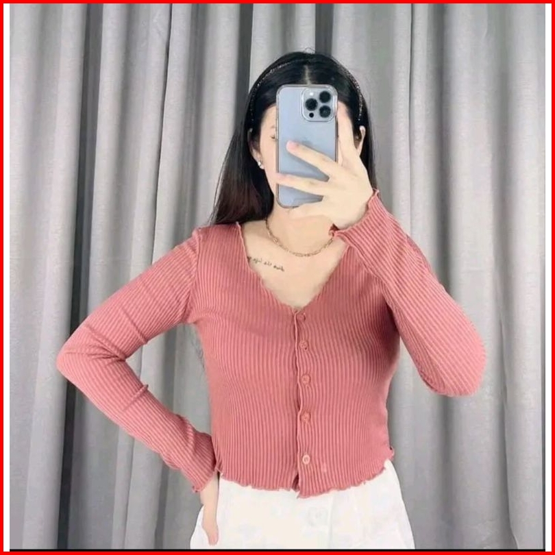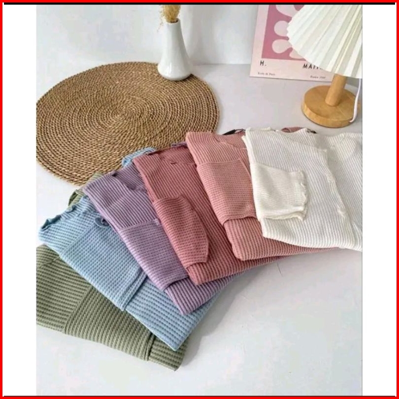 Cardigan Waffle Crop Wanita Korean Style