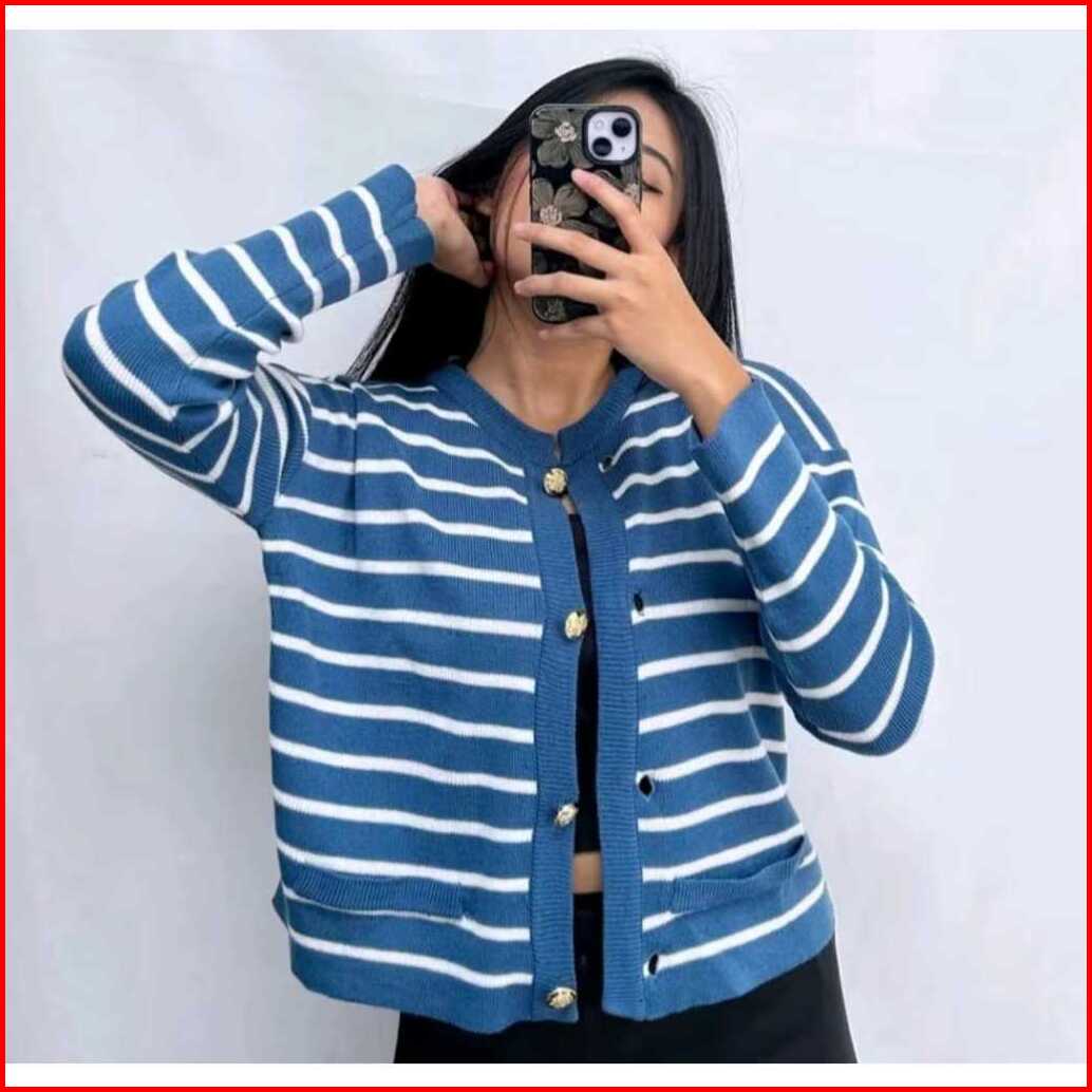 Cardigan Stripes Knit Korean Vintage Flower Cardigan Cardigan Wanita