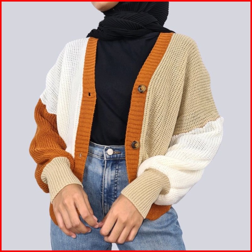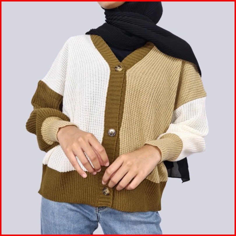 Helena Cardigan Combi Twist Colour Helena Knit Rajut Cardy Twotone Combination