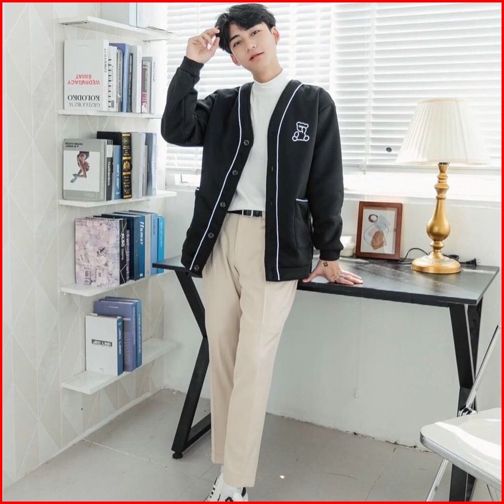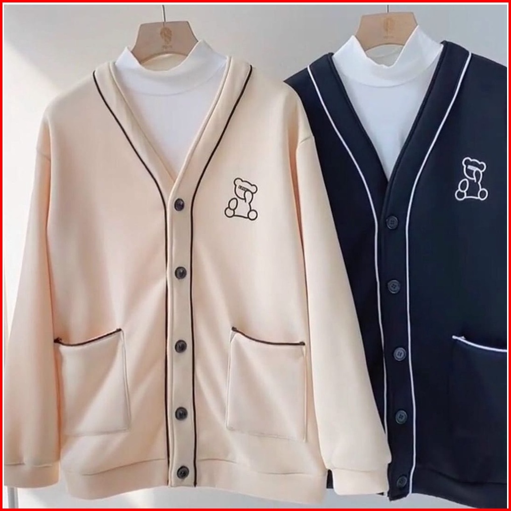 Tf - Lonely Bear Kardigan Wanita Dan Pria - Outer Cardigan Sekolah Remaja Kekinian Korean Style - Bahan Fleece