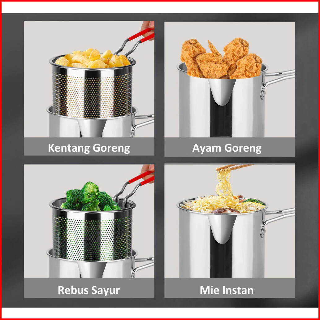 Yooyee Panci Mini Penggorengan Deep Fryer Pot Strainer Stainless Steel Small