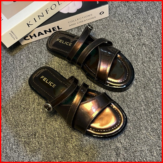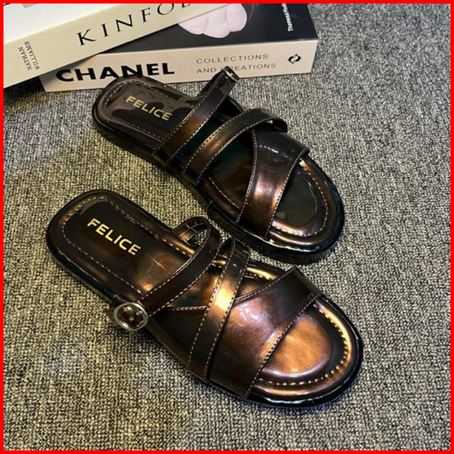 Felice - Sandal Platfrom Mahogany Wanita Silang Gesper Terbaru Kekinian