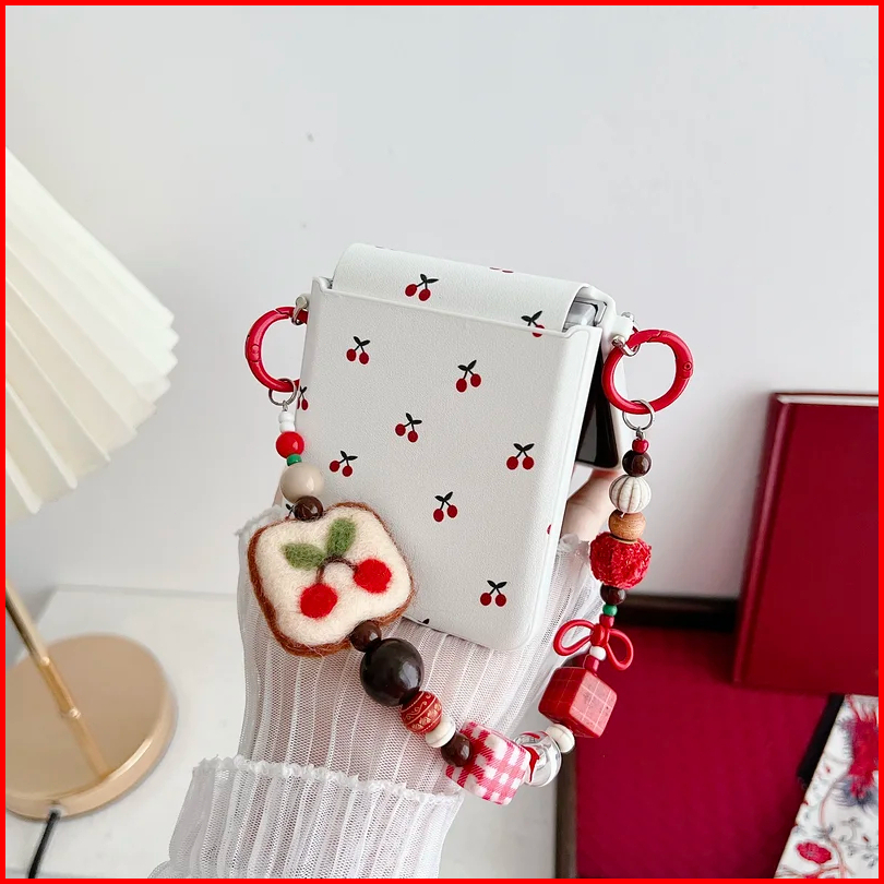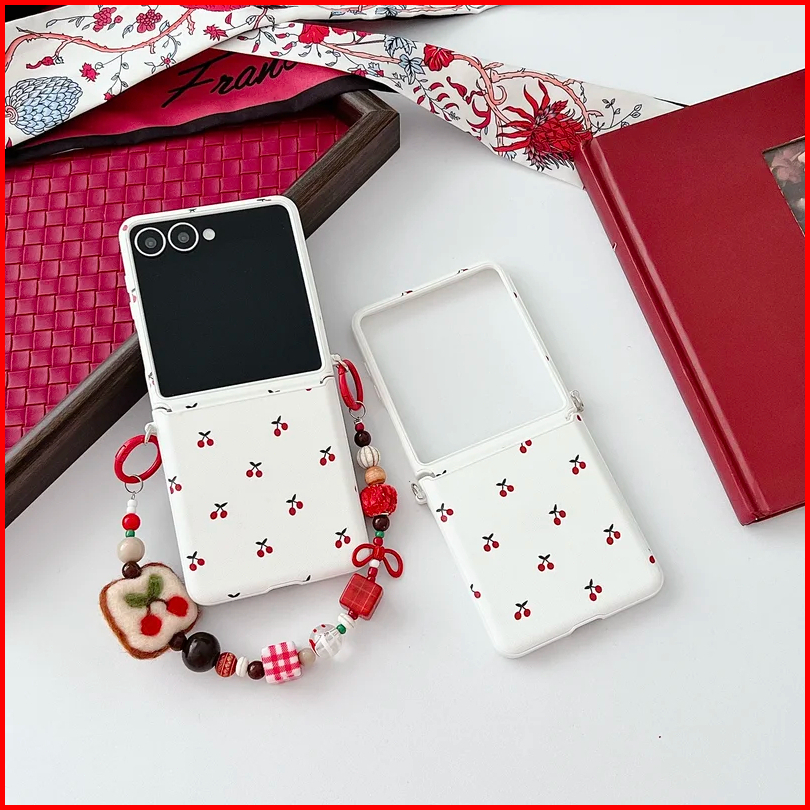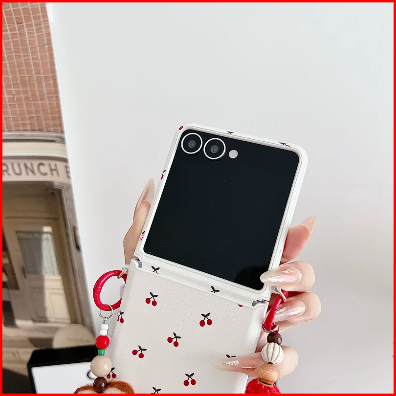 For Samsung Galaxy Zflip7 Z Flip 7 6 5 Zflip6 Flip5 5g Case Cute Fruit Cherry With Wrist Strap Phone Accessories