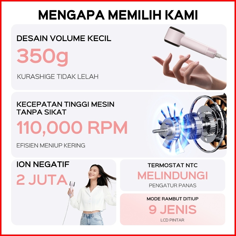Han River Hair Dryer Mini High Speed Hair Dryer Portable 9 Mode Visualization Travel Bisnis