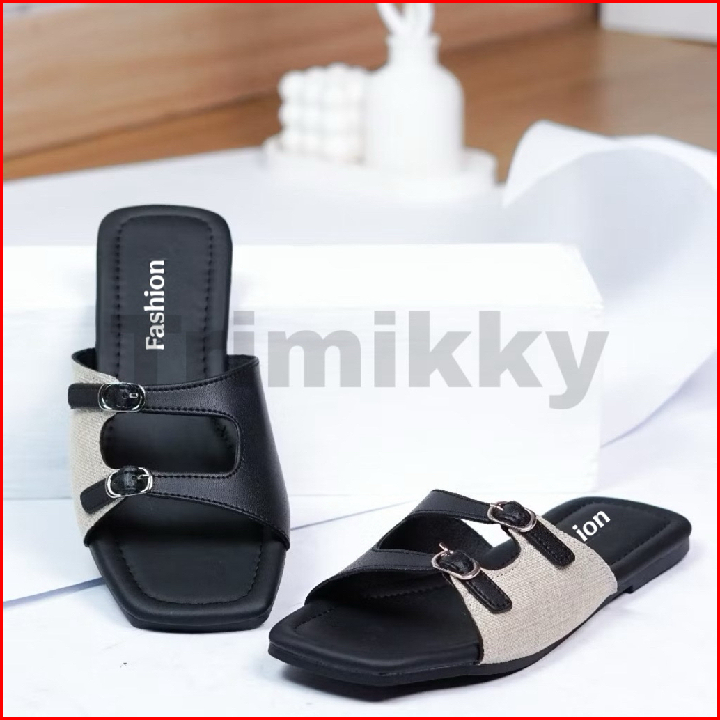 Sandal Teplek Wanita Daily Casual Tali Strap Polos Kekinian Elegan Flat Datar