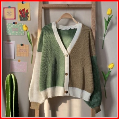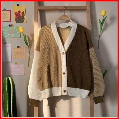 Cardigan Mix Two Tone Hellen Kardigan Rajut Mix Warna