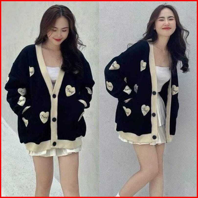Cardigan Wanita Oversize - Swe Love Cardie Oversize Wanita - Outfit Korean Look Cardie Kancing Bersaku