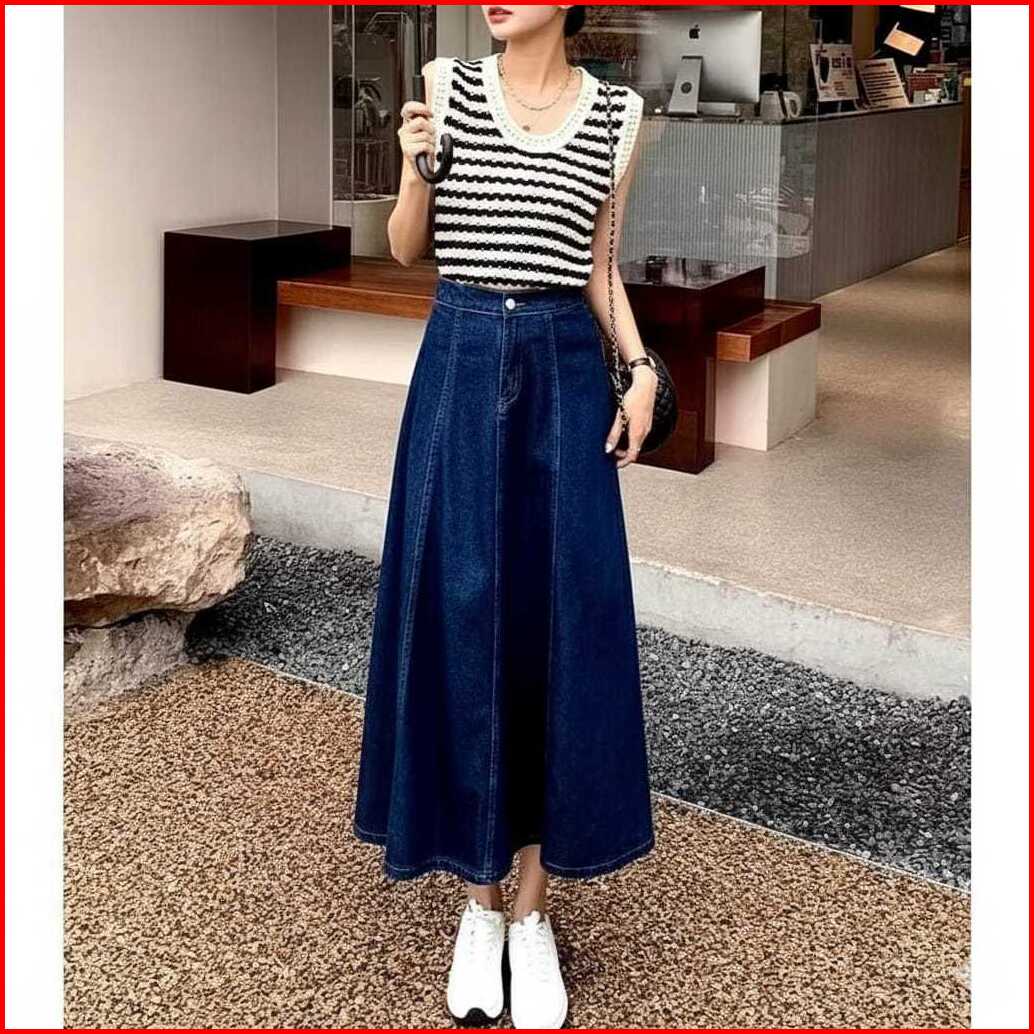 Rok Jeans Wanita Panjang A-line High Waist Mayung Premium Tebal Korean Style Rok Denim