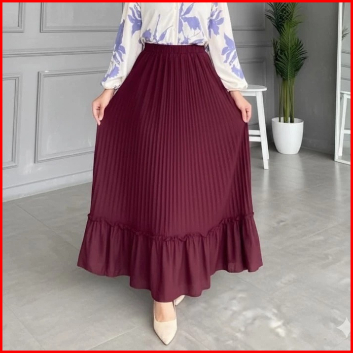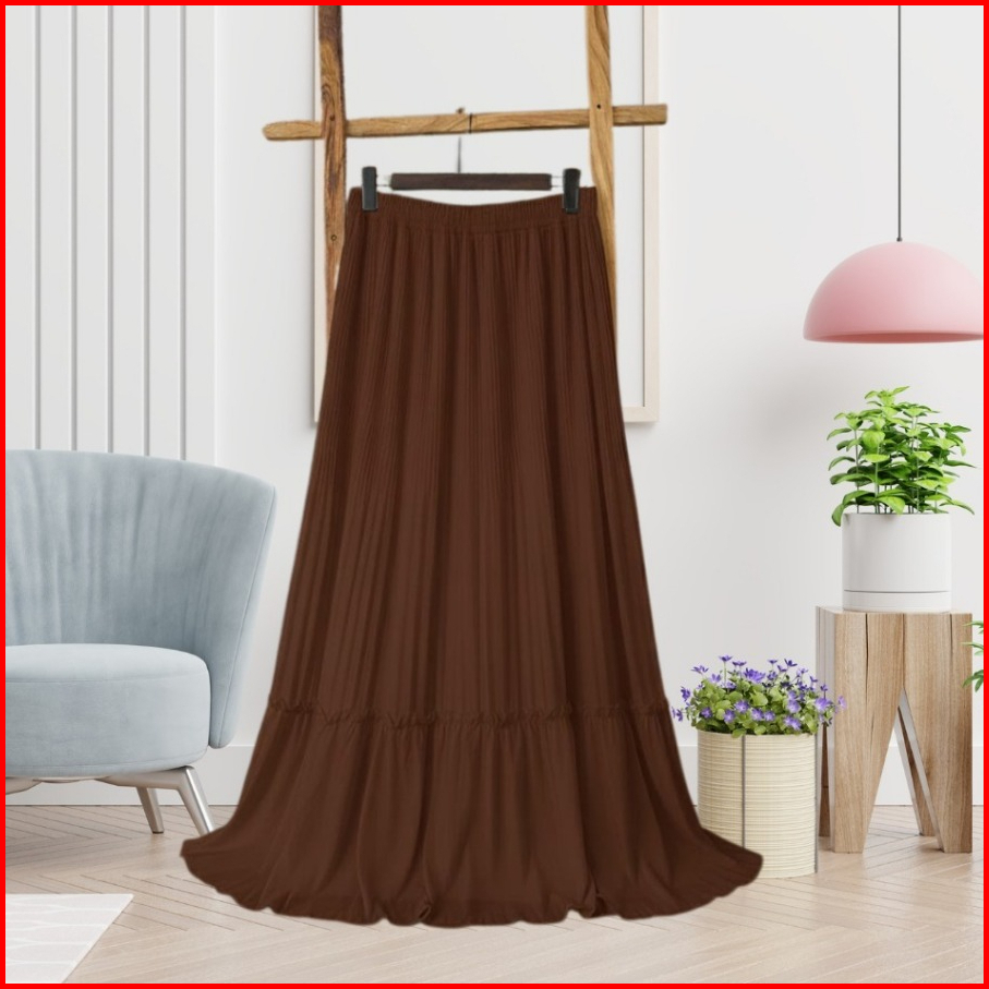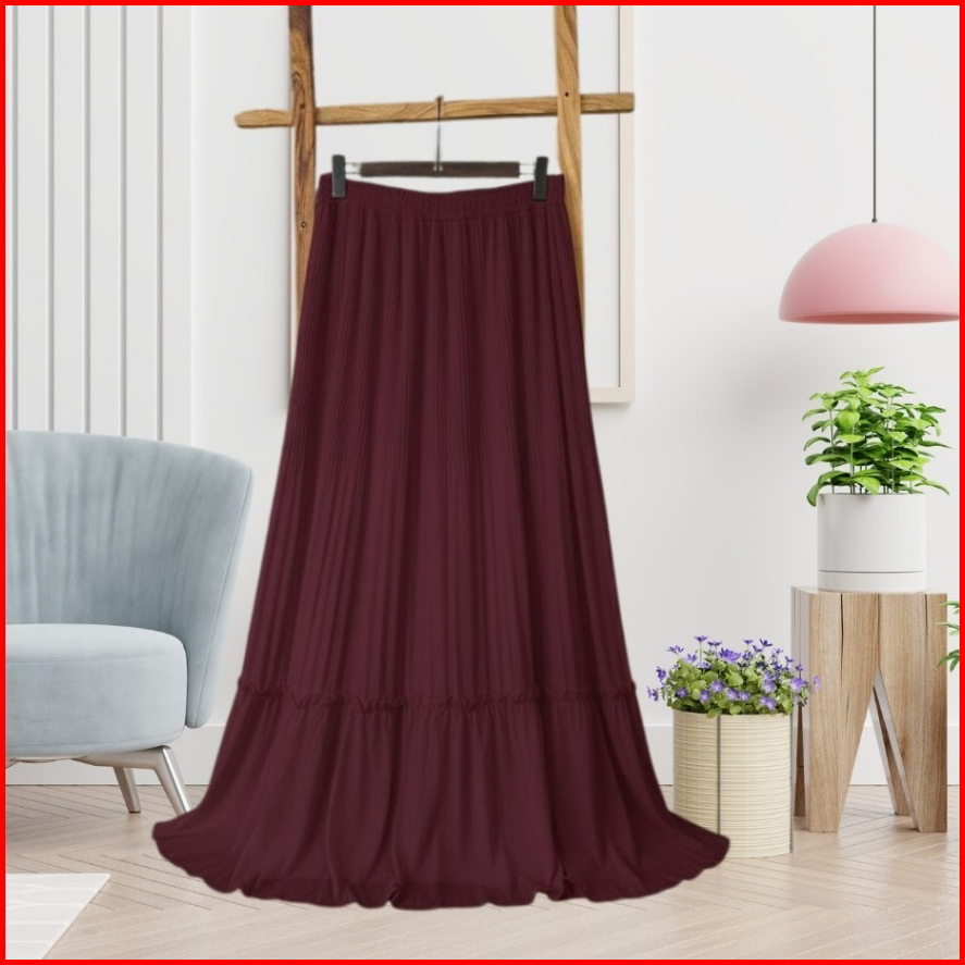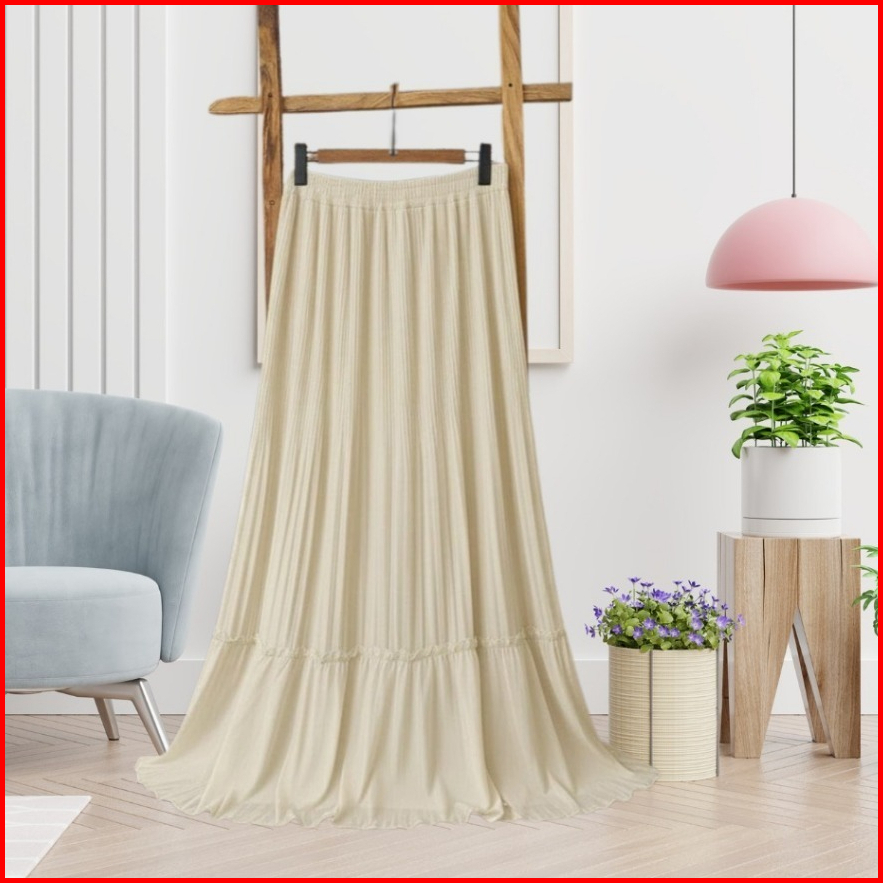 Rok Wanita Anti Nerawang Korean Style Kekinian Simple Elegant Rok Plisket Susun Mayung Skirt Ruffle Hyget Polos Premium