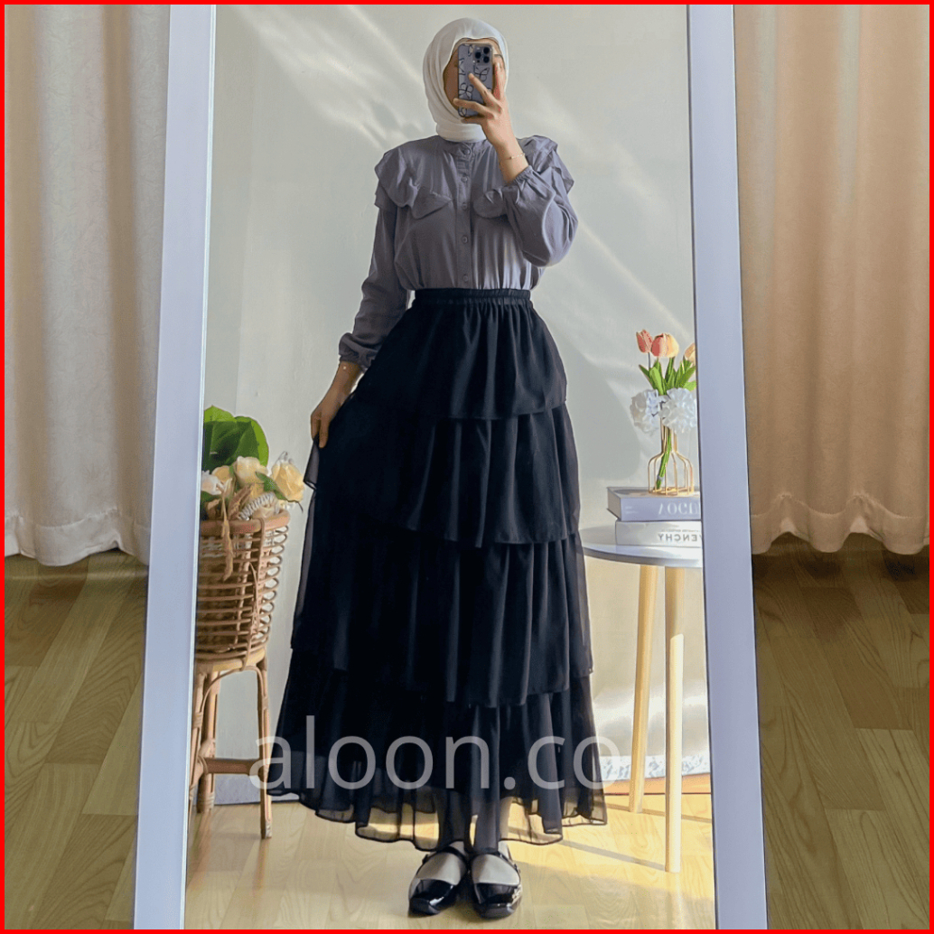 Yuri Rok Ruffle Ceruty Babydoll Premium Rok Panjang Korea Style Terbaru