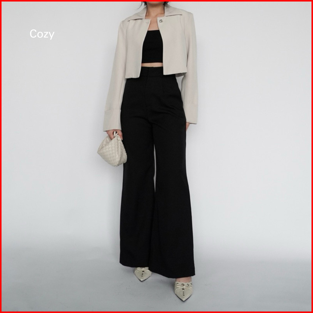 Cozy - Celana Panjang Wanita Kekinian Celana Bahan Kerja Kantor Wanita Highwaist Loose Pants