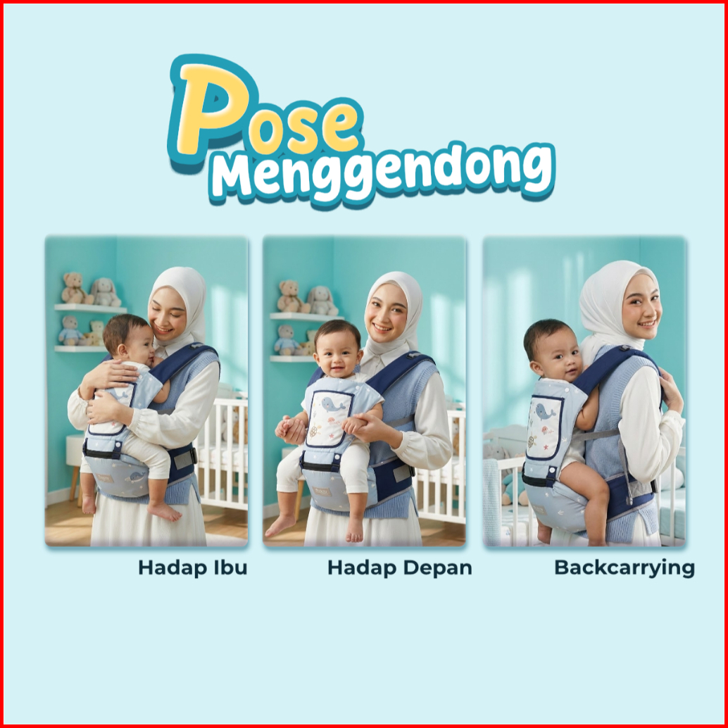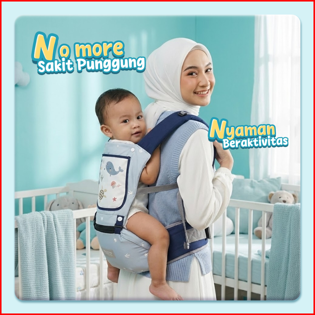 Think Baby Gendongan Bayi Hipseat M Shape Motif Sea Life Dilengkapi Penutup Kepala
