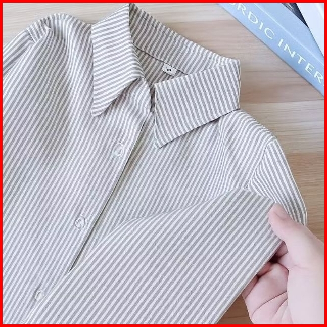 Kemeja Anak Perempuan 1-12 Tahun Motif Salur Striped Baku Kemeja Anak Cewek Bahan Katun Premium