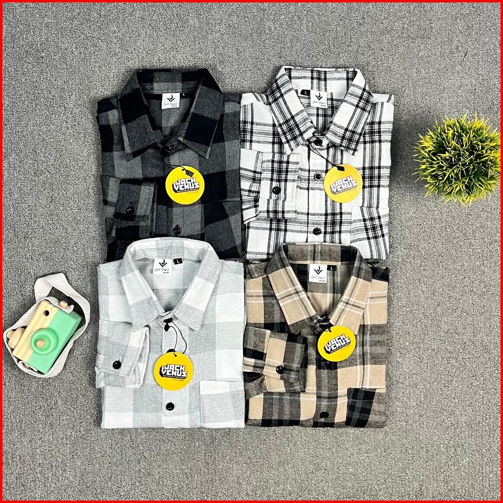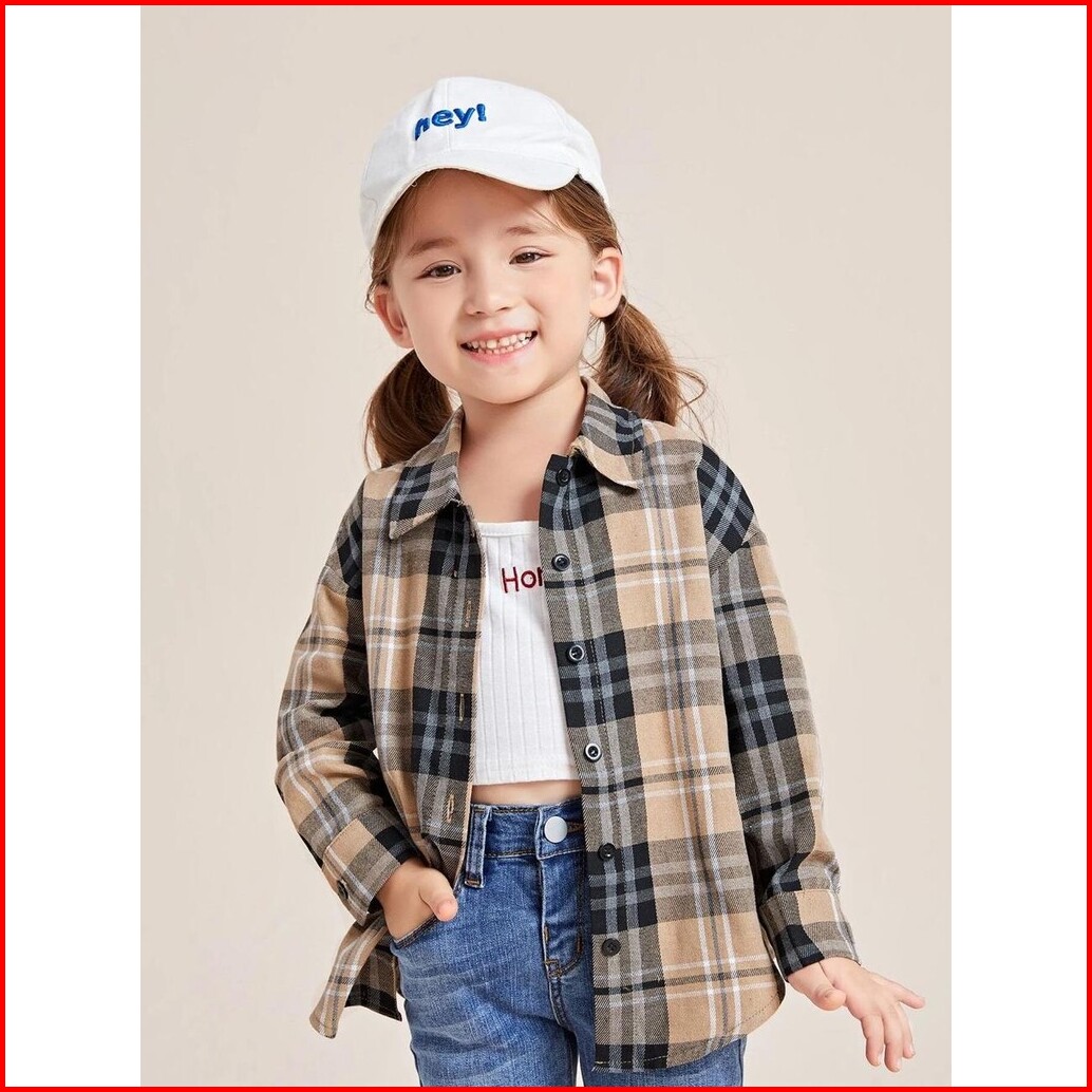 Jackvenus Kemeja Anak Lengan Panjang Hem Flanel Kotak Tartan 2-13 Tahun Atasan Kemeja Anak Laki Laki