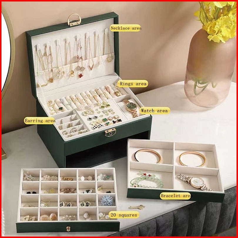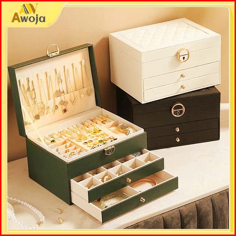Gratis Kunci Kotak 3 Lapisan Jewelry Box Display Retro Baru Penyimpanan Anting Rak Kotak Tempat Kotak Cincin Kalung Temp