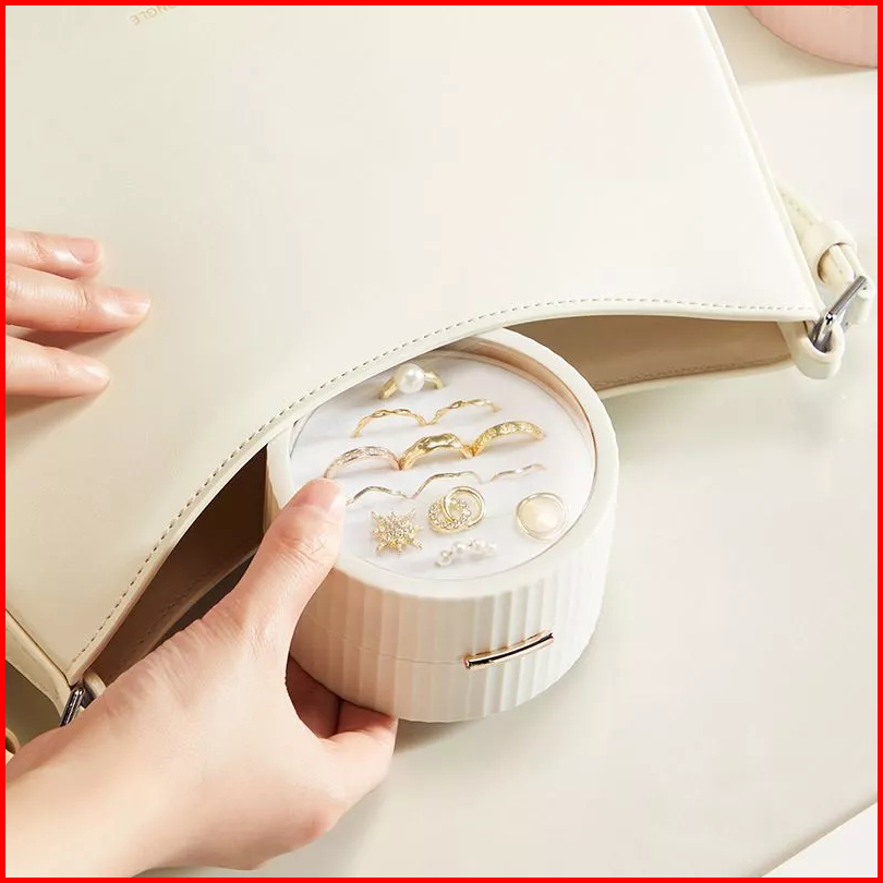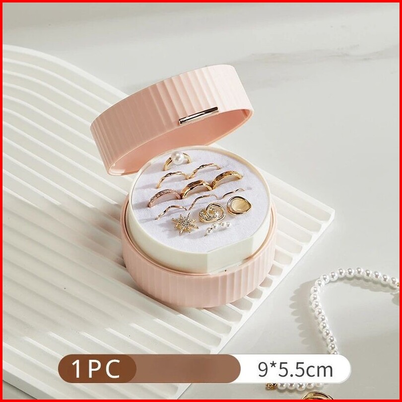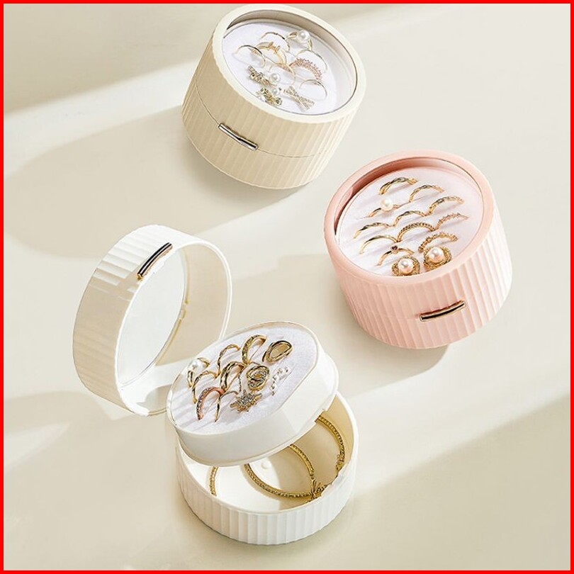 Round Jewelry Minimalist Storage Box Kotak Tempat Bulat 2 Double Layer Tingkat