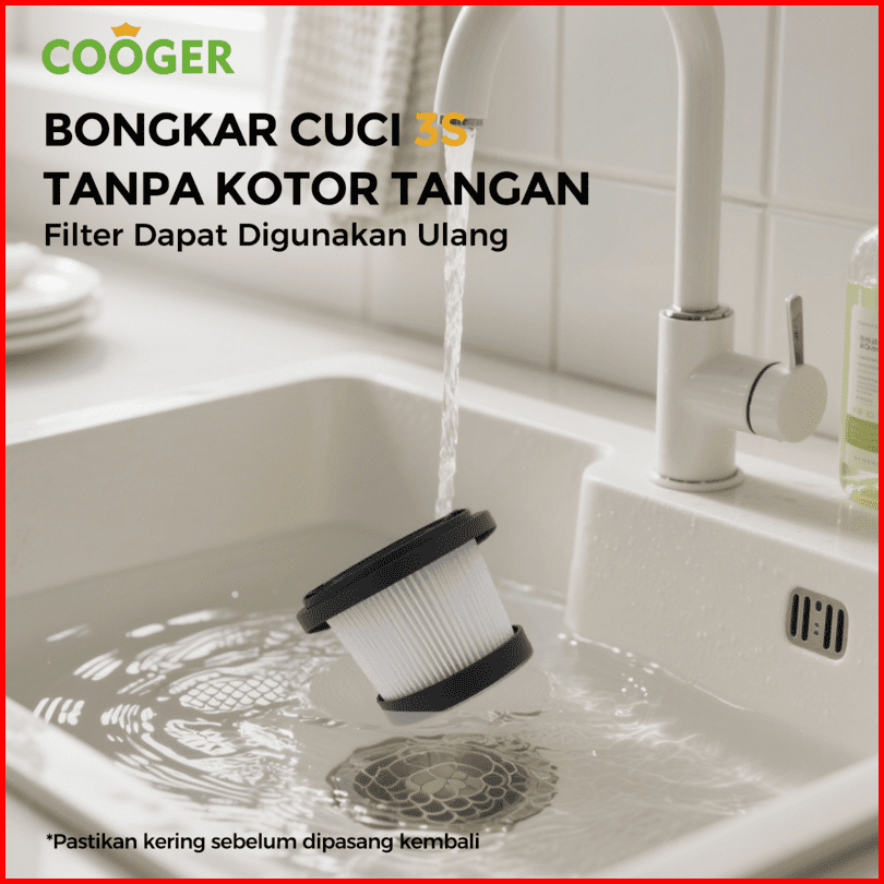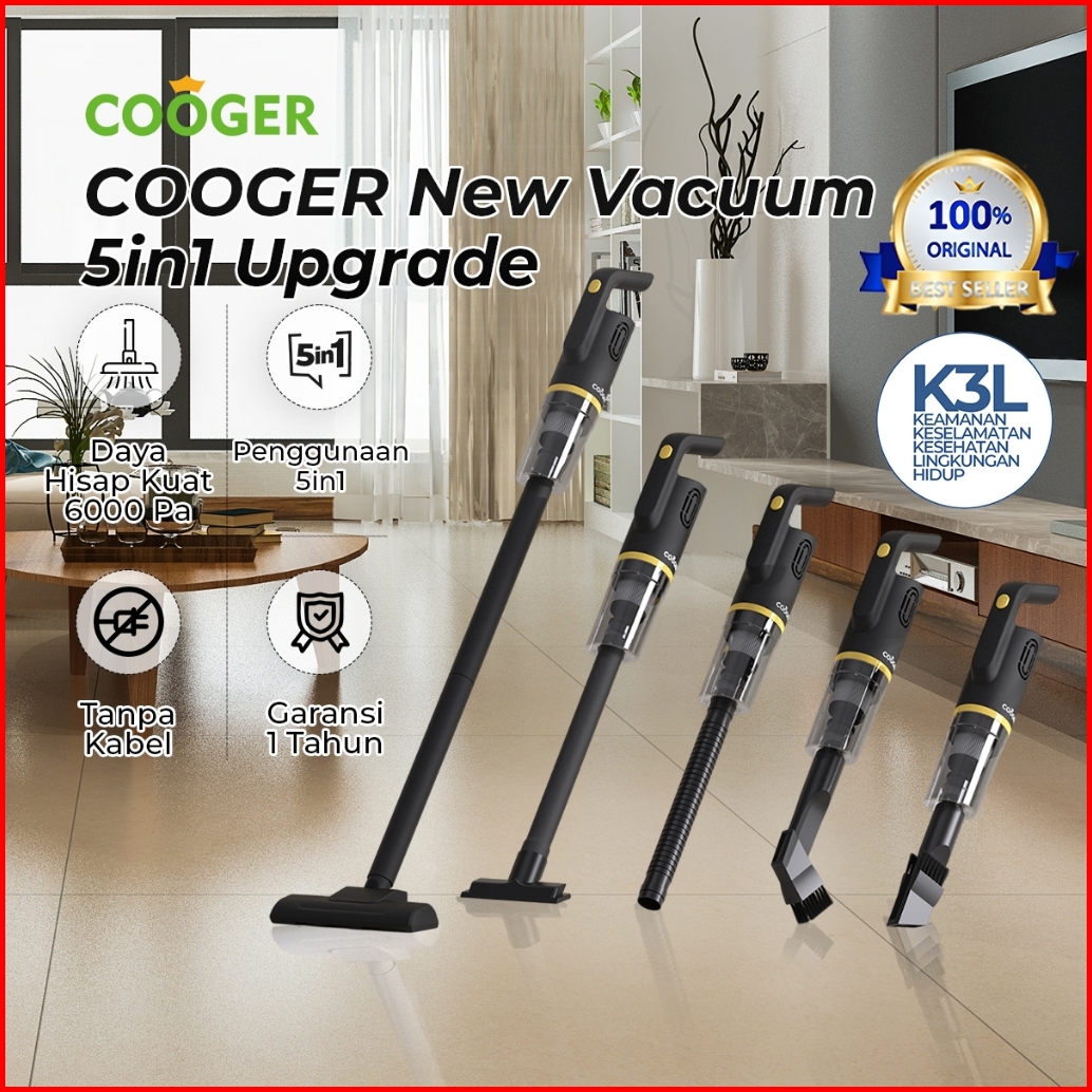 Cooger New Vacuum Cleaner 5in1 Penyedot Debu Serbaguna Garansi 1 Tahun Dengan Gagang Panjang Warna Hitam Elegan Daya His