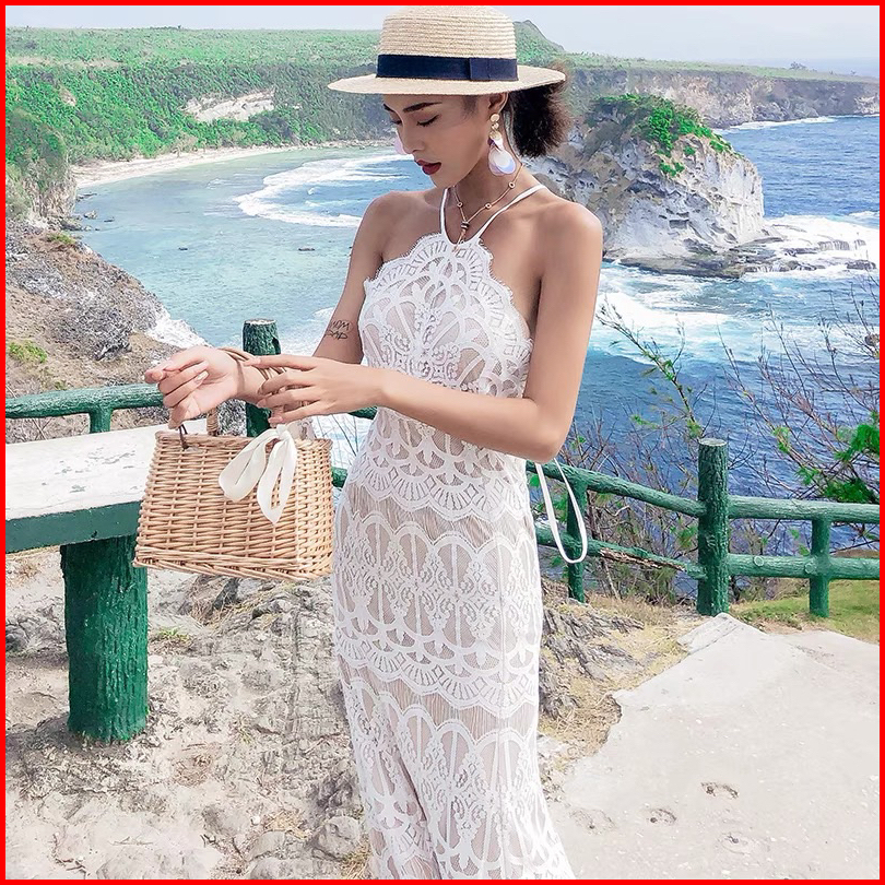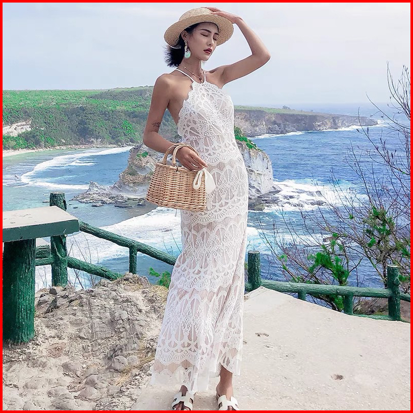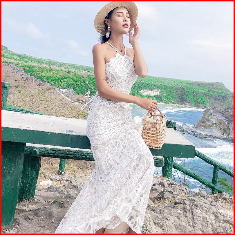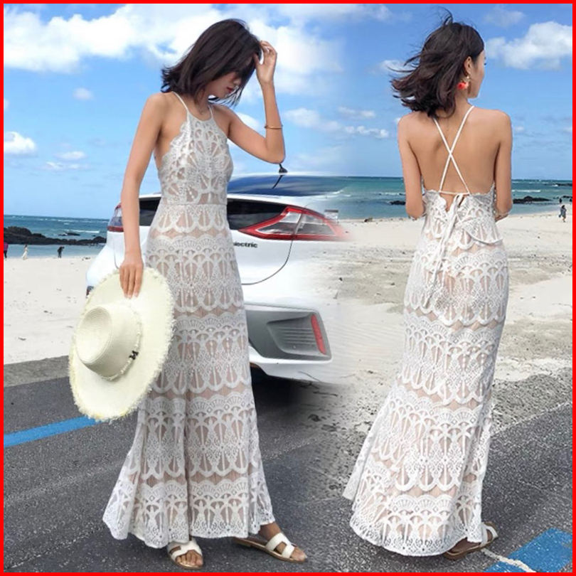 Dress Beach Gaun Pantai Backless Wanita Lace Elegant Mx584