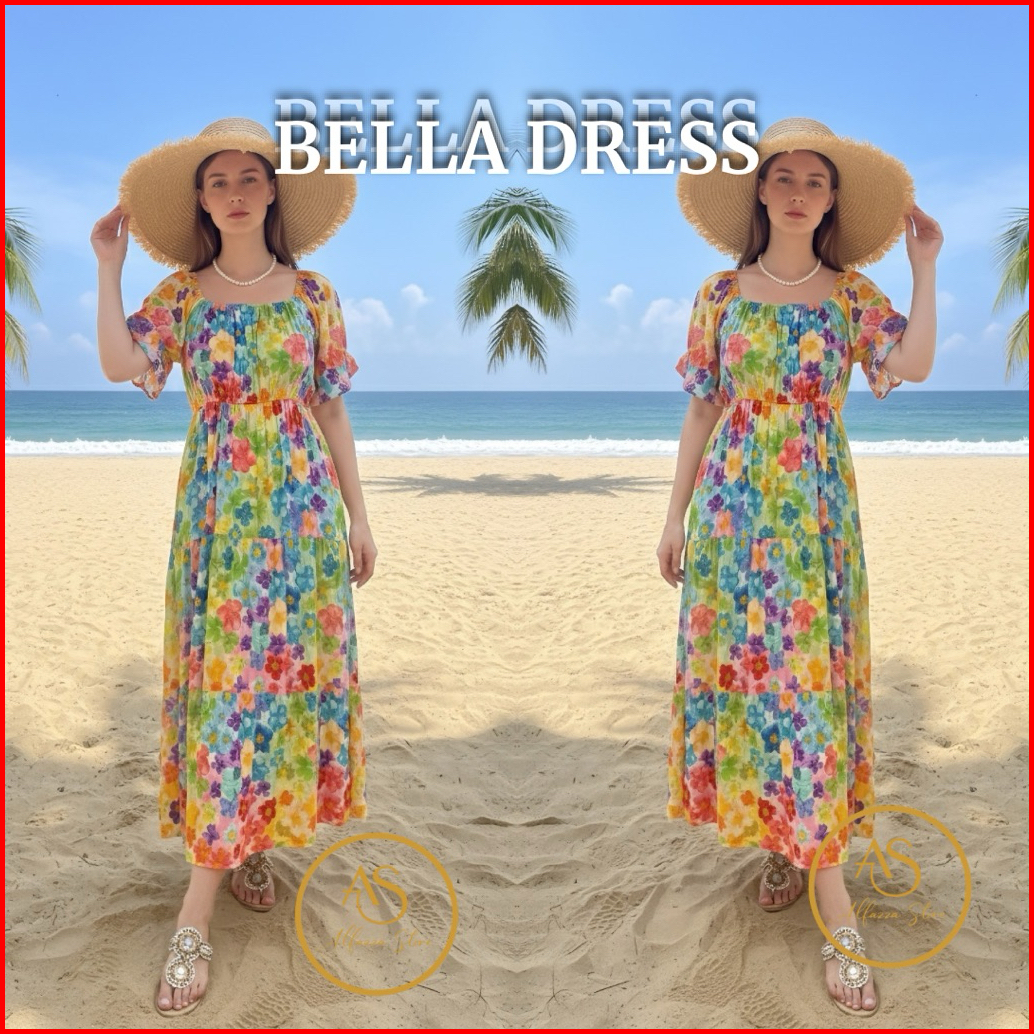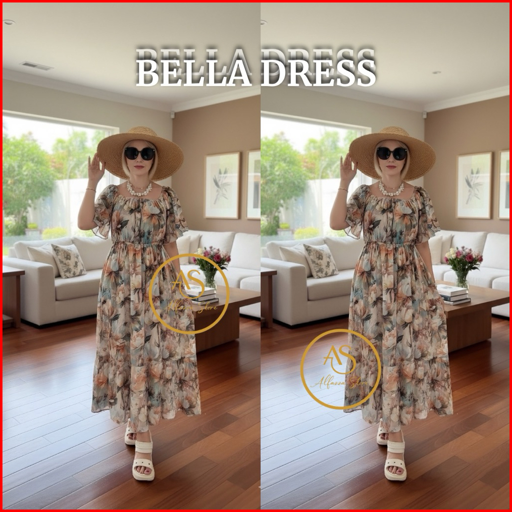 Alfazza Bella Dress Midi Wanita Rayon Viscose Motif Casual Baju Pantai Busui Bumil
