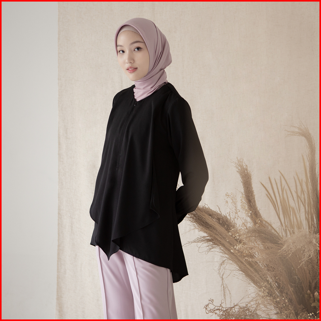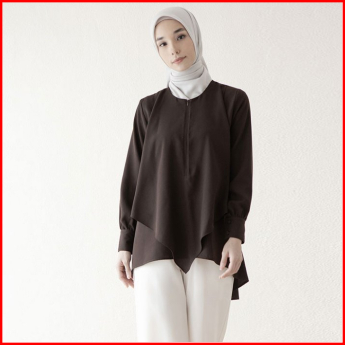 Dian By Aska Label - Atasan Kantor Basic Lengan Panjang Dan Busui Friendly Warna Putih Berfuring Burgundy Sand Mint Mauv