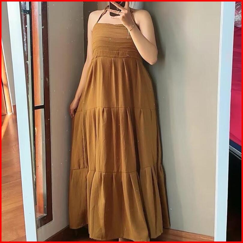 Long Dress Halter Cessy Korean Style Maxy Dress Pantai Elegan