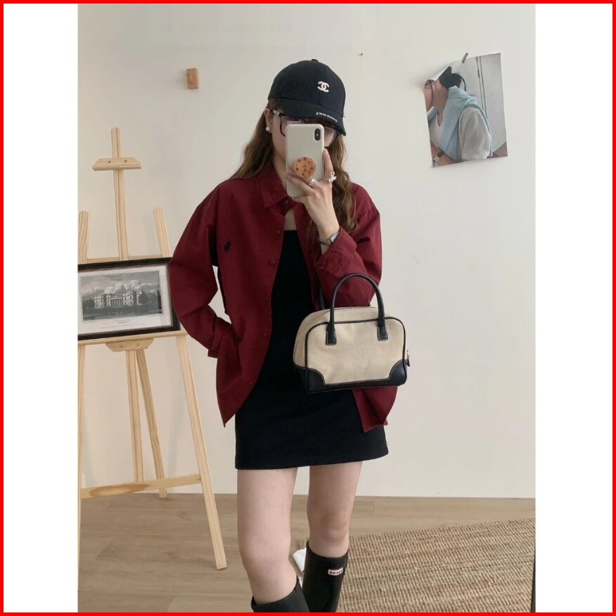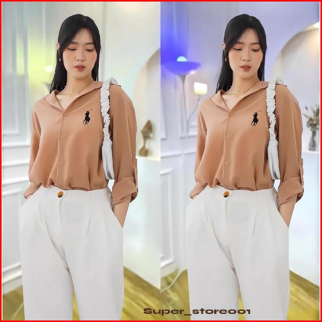 Terlaris Kemeja Wanita Rayon Twill Bordir Polo Atasan Wanita Polos Lengan Panjang Terbaru Kekinian