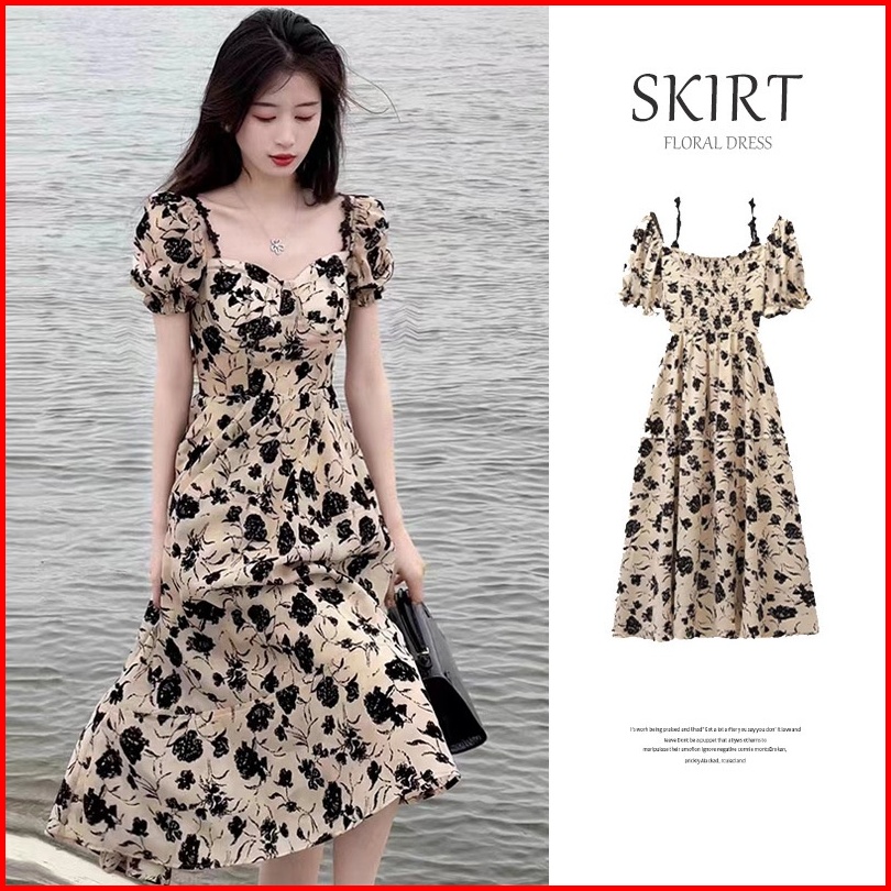 Ddh 510 Sabrina Midi Dress Pantai Pakaian Wanita Off Shoulder Beach Rok Panjang Bunga Floral Korea