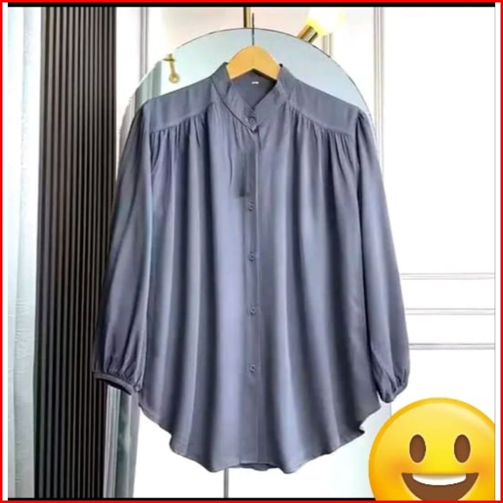 Amena Kemeja Wanita Oversize Kekinian Bahan Rayon Twill Polos Premium Lengan Panjang