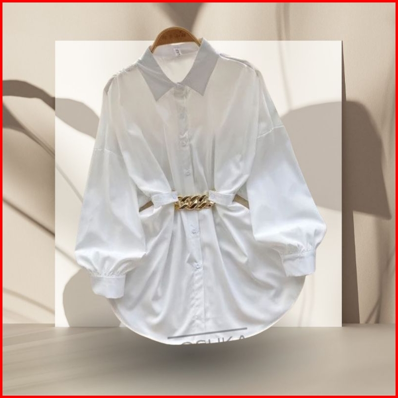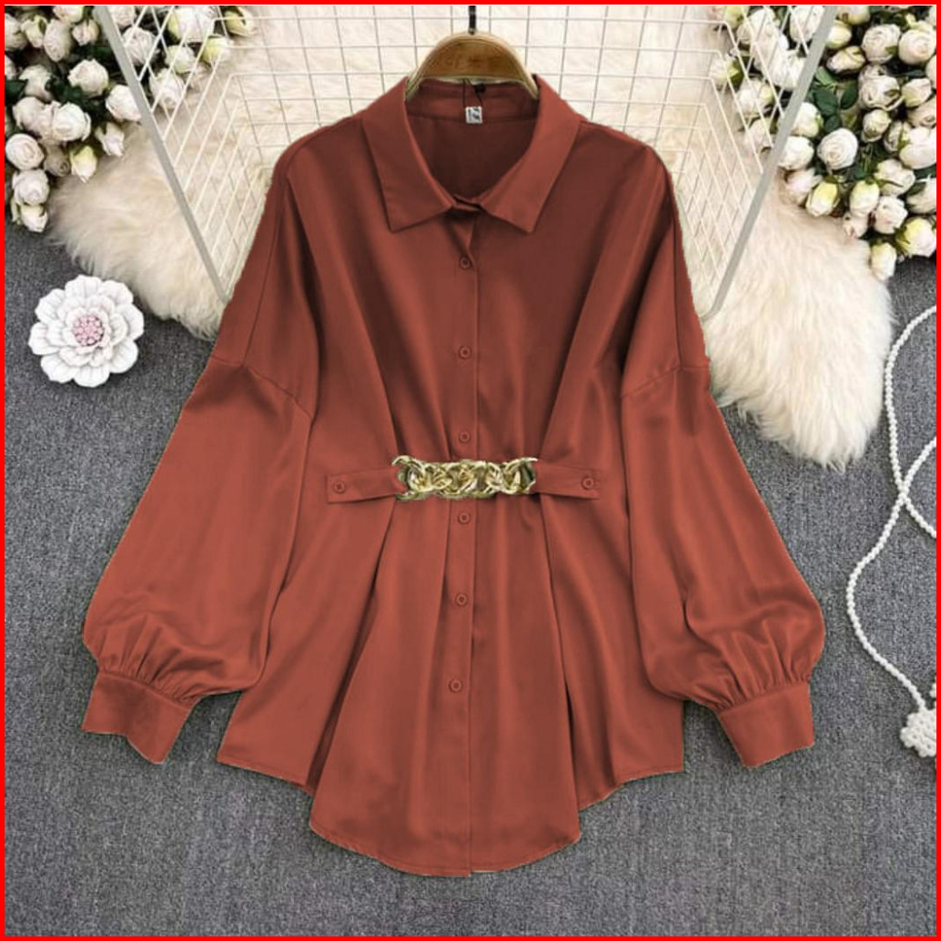 Kemeja Wanita Polos Motif Rantai Lengan Balon Korean Style Melda Oversize Jumbo M L Xl Xxl
