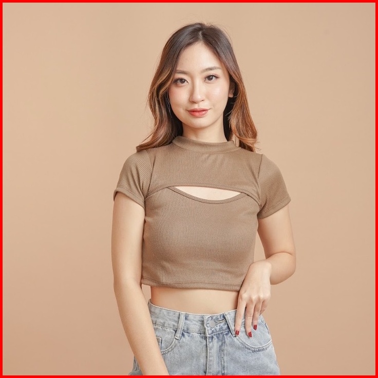 Modavie - Luna Crop Top Korea Kaos Pendek Wanita Crop Tee Korean