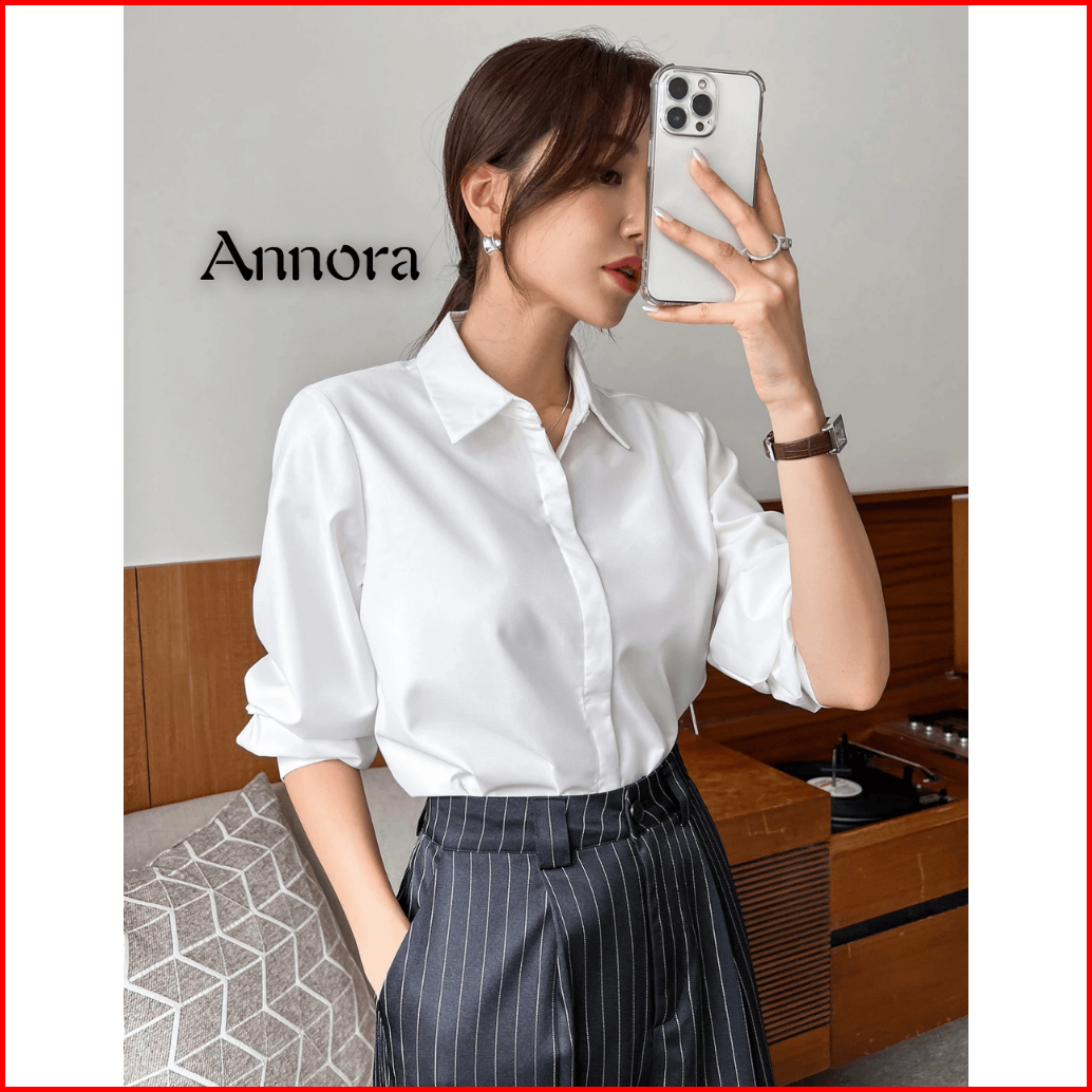 Kemeja Putih Wanita Lengan Panjang Formal Kerja Kantor Katun Polos