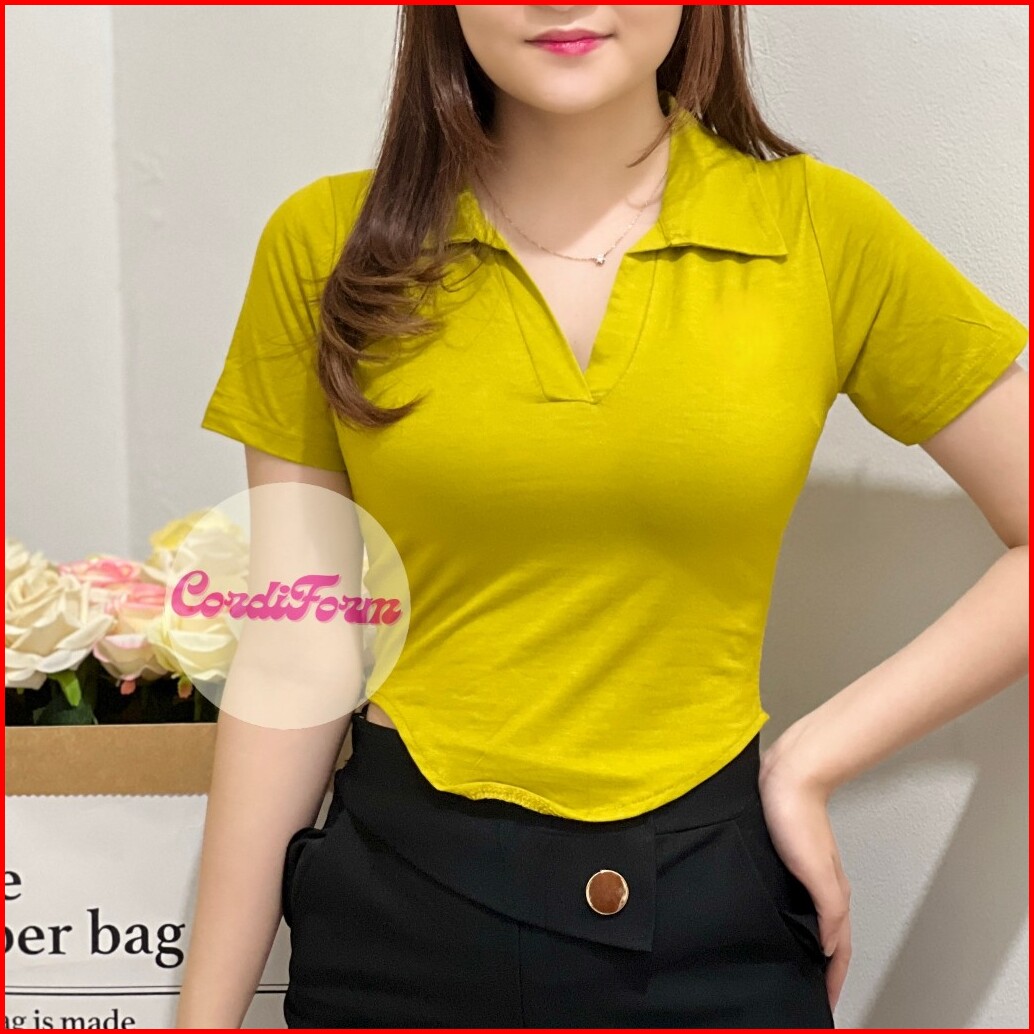 Crop Top Polos Kerah Oval Kekinian Short Sleeve 72