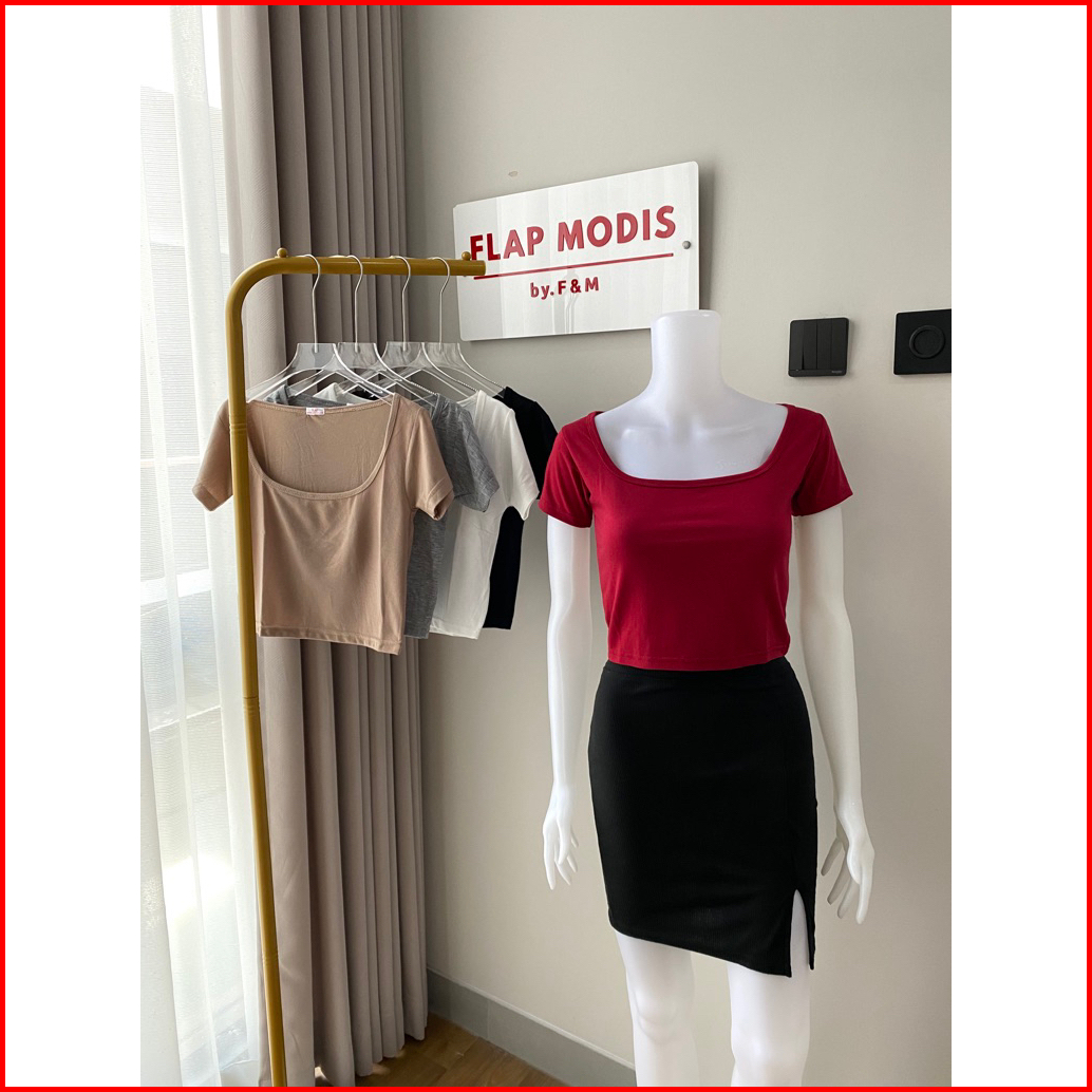 Croptee Croptop Fms-03 Baju Korea Wanita Bahan Spandek Premium