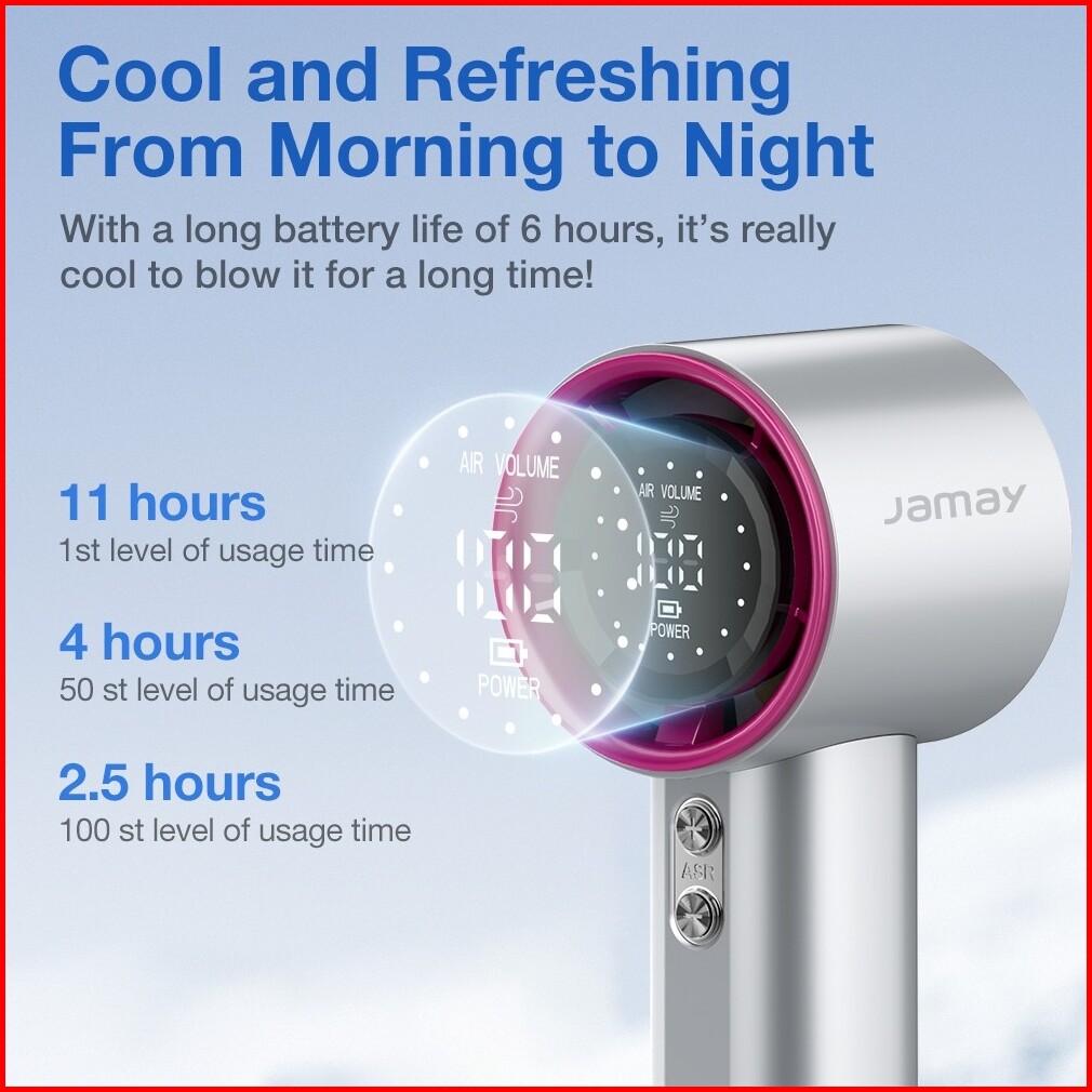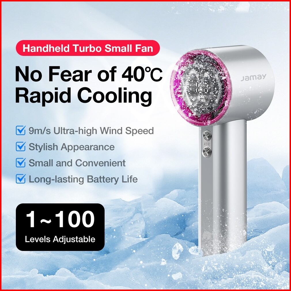Jamay Mini Portabel High-speed Kipas Strong Wind 100 Gear Wind Speed 6000mah Handheld Kipas Angin Digital Display Adjust