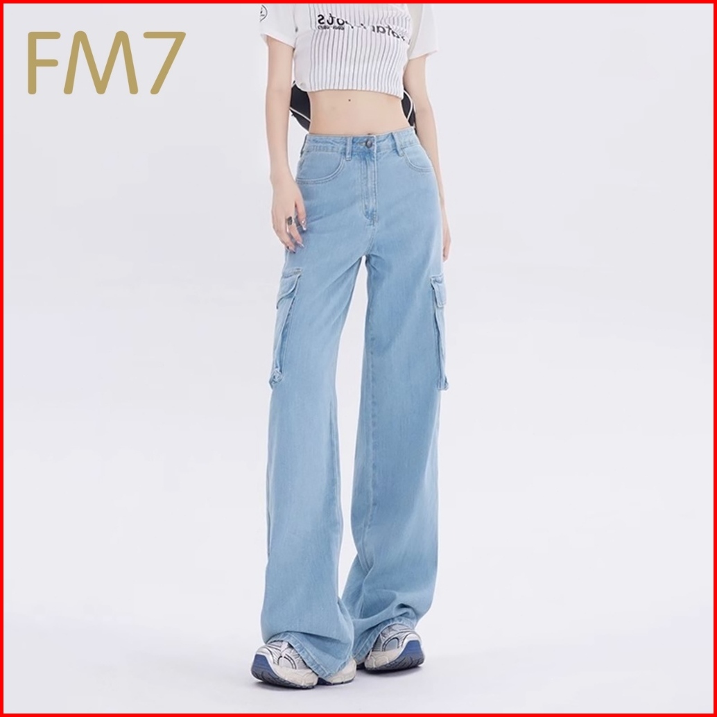 Fm7 L113 Korean High Waist Bagy Jeans Cargo Wanita - Putih
