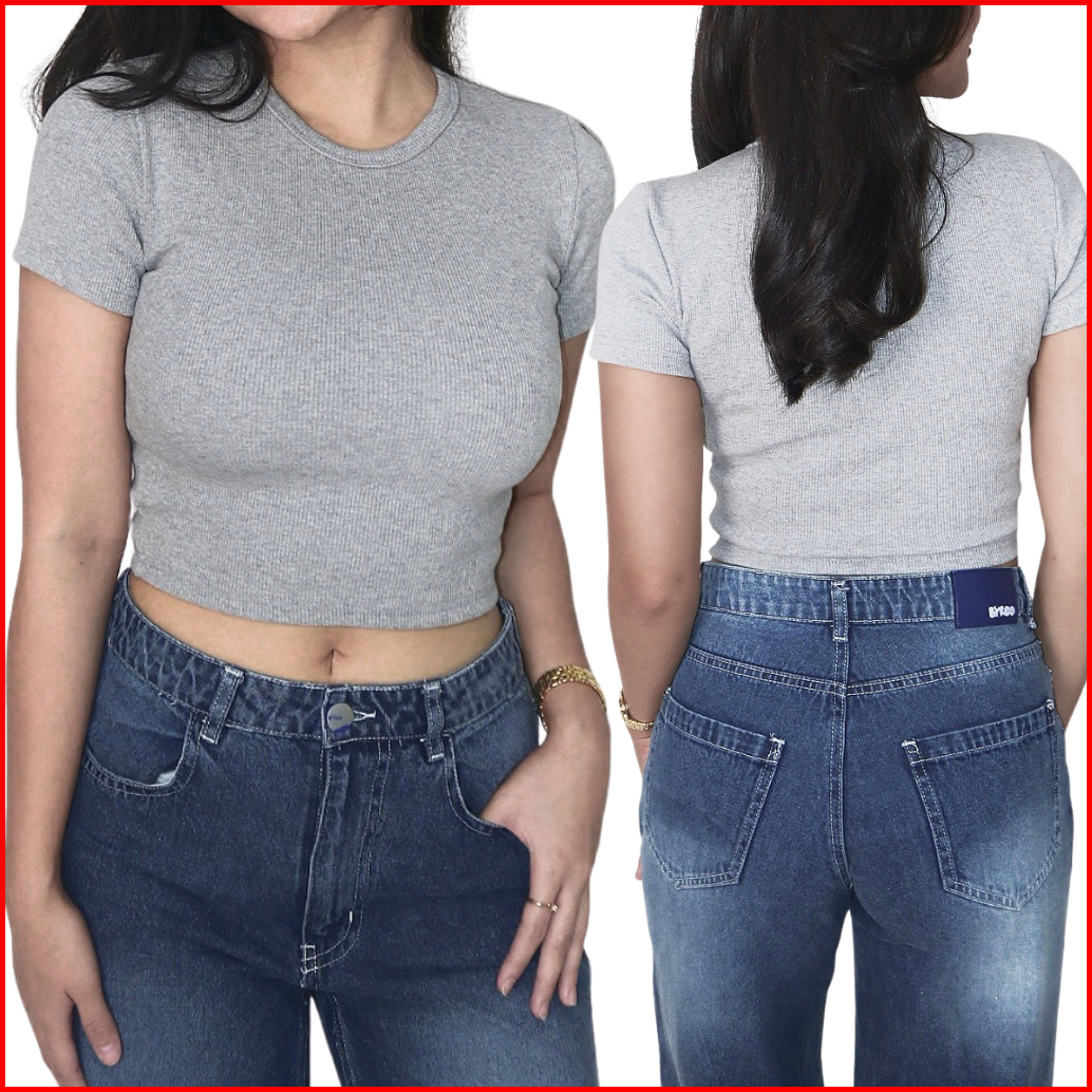 Sena Karina Top - Ribbed Baby Tee Knit Kaos Crop Top Wanita