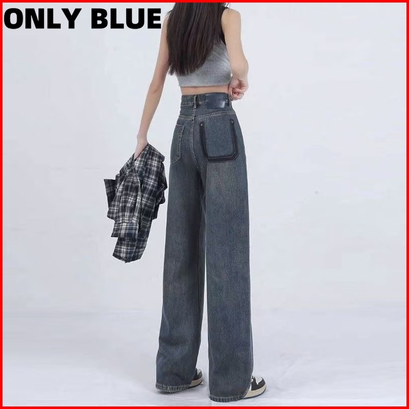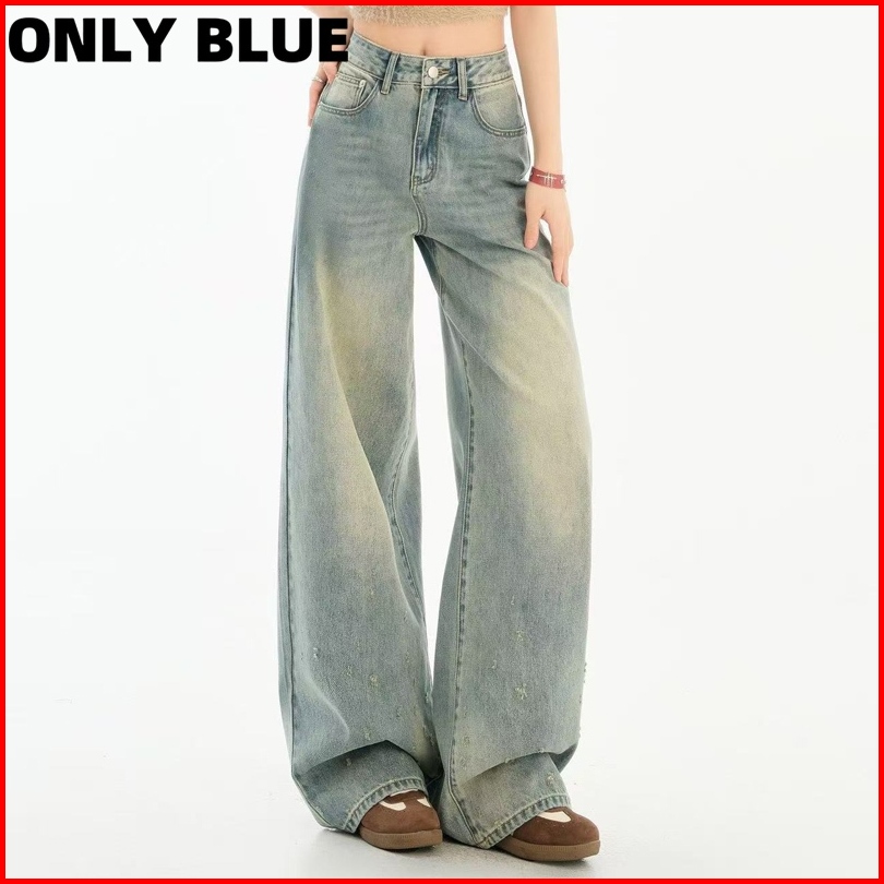 Only Blue Celana Jeans High Waist Wanita Korean Style Jeans Baggy Pants Serbaguna Kasual Biru Retro