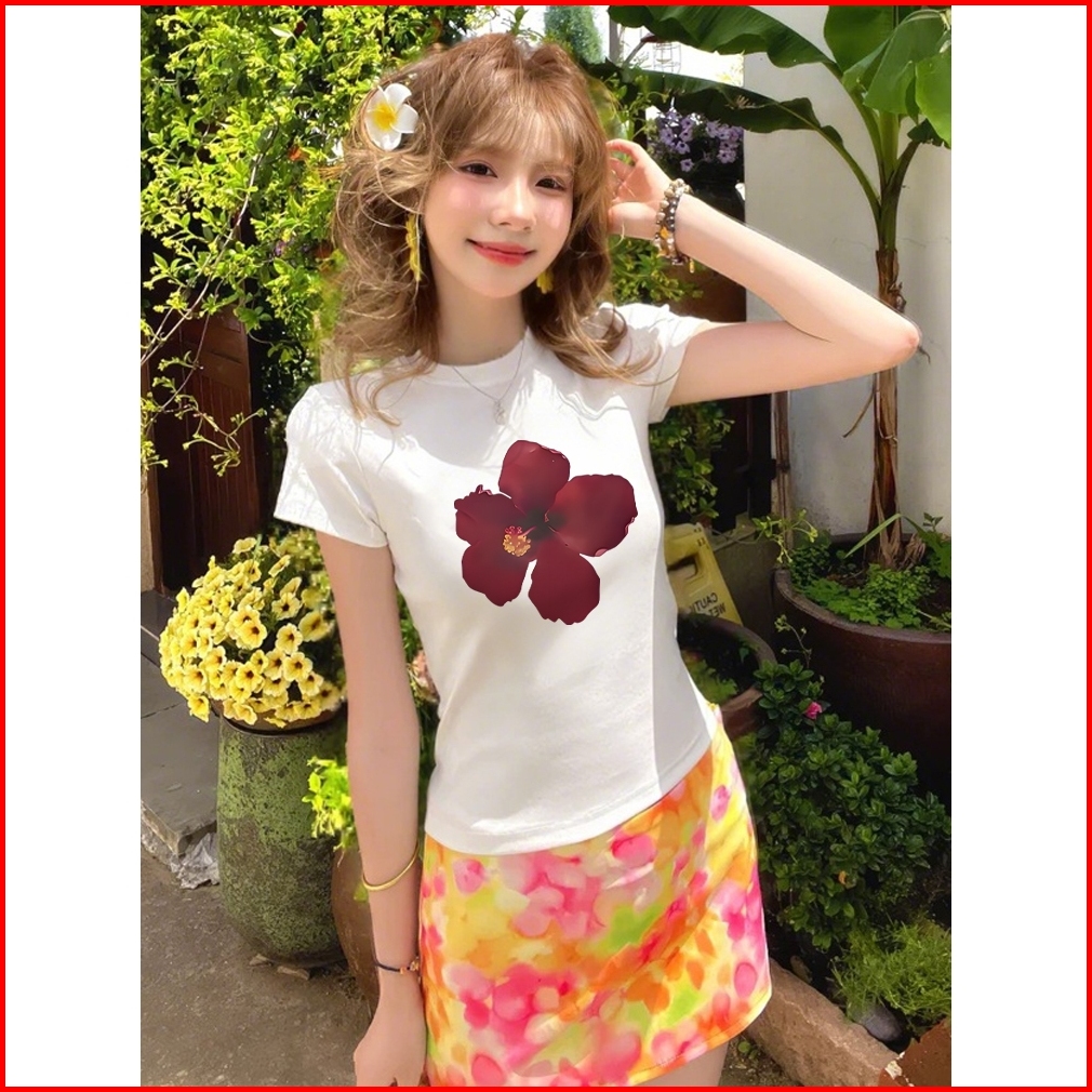 2toyoung Motif Bunga Y2k Comfort Premium Combed 24s White - Kaos Wanita Crop Top Katun Baju Atasan Wanita Terbaru