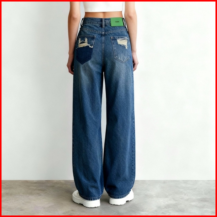 Celana Jeans Wanita Boyfriend Biru Ripped Pocket 5309 Mein Premium