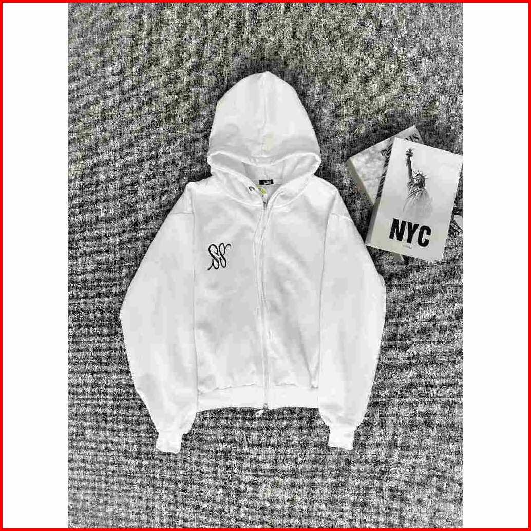 Hoodie-jaket Wanita Ss Putih Double Zip Lembut Nyaman Sweater-casual Wanita