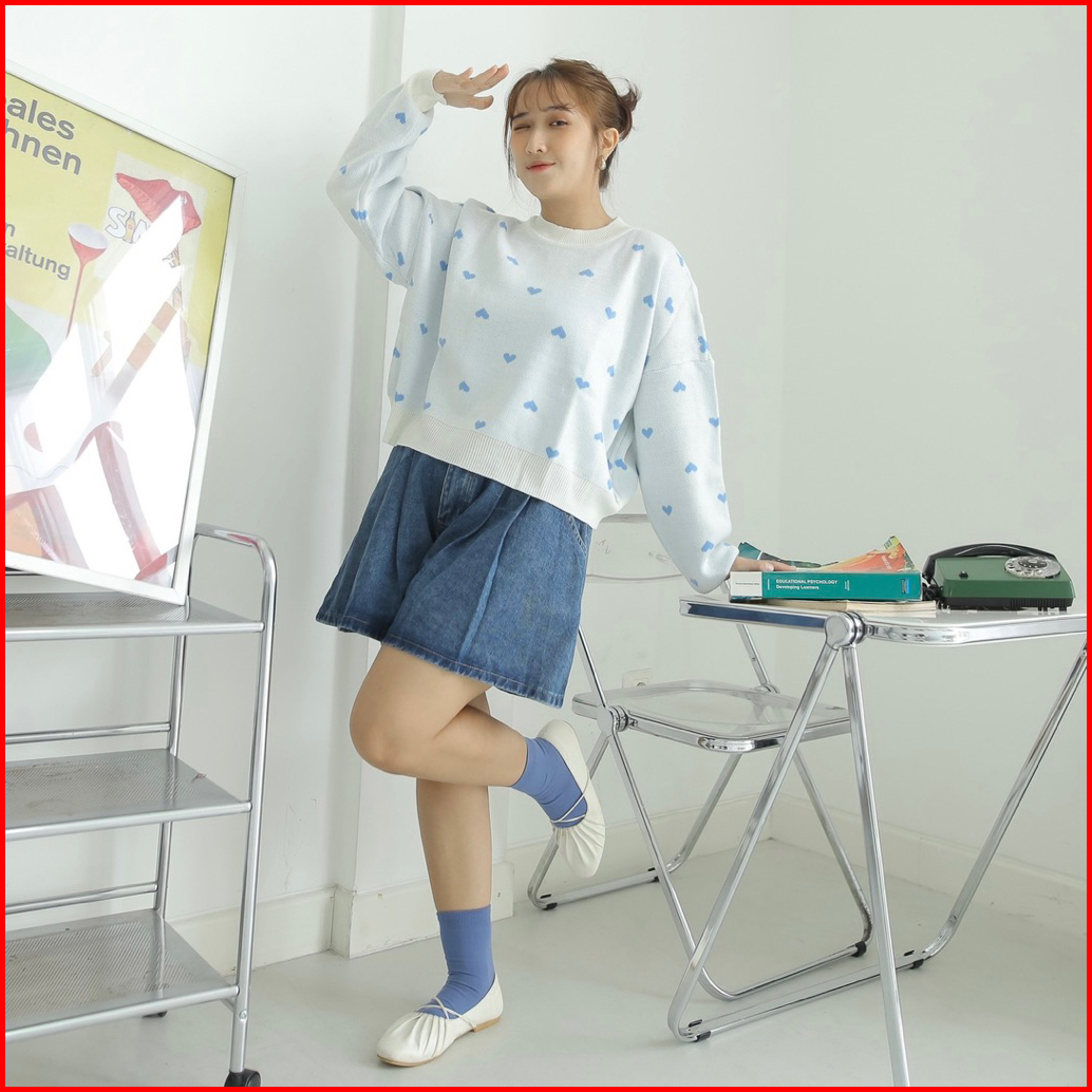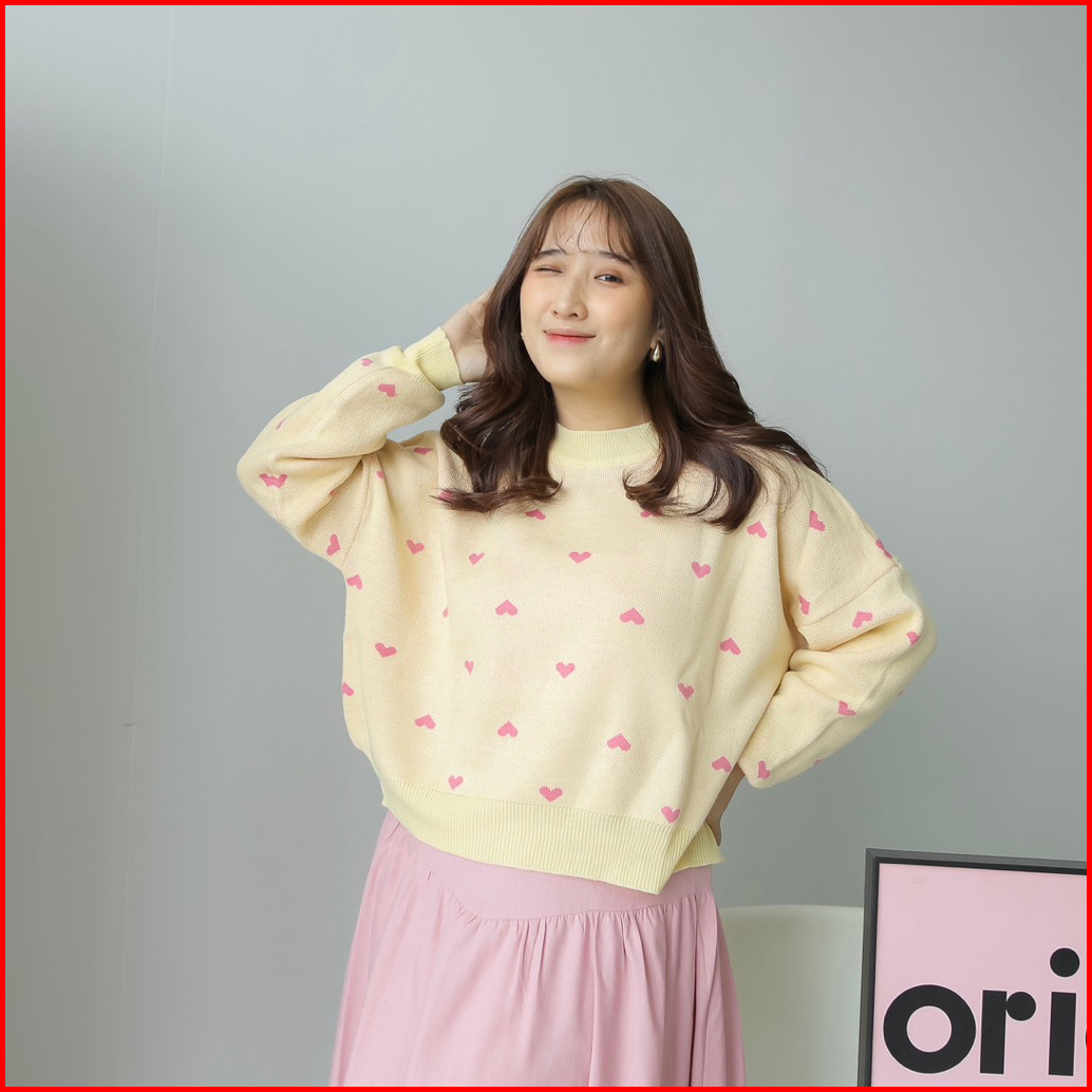 Midun.project - Lovely Crop Knit Sweater Atasan Rajut Wanita Motif Love