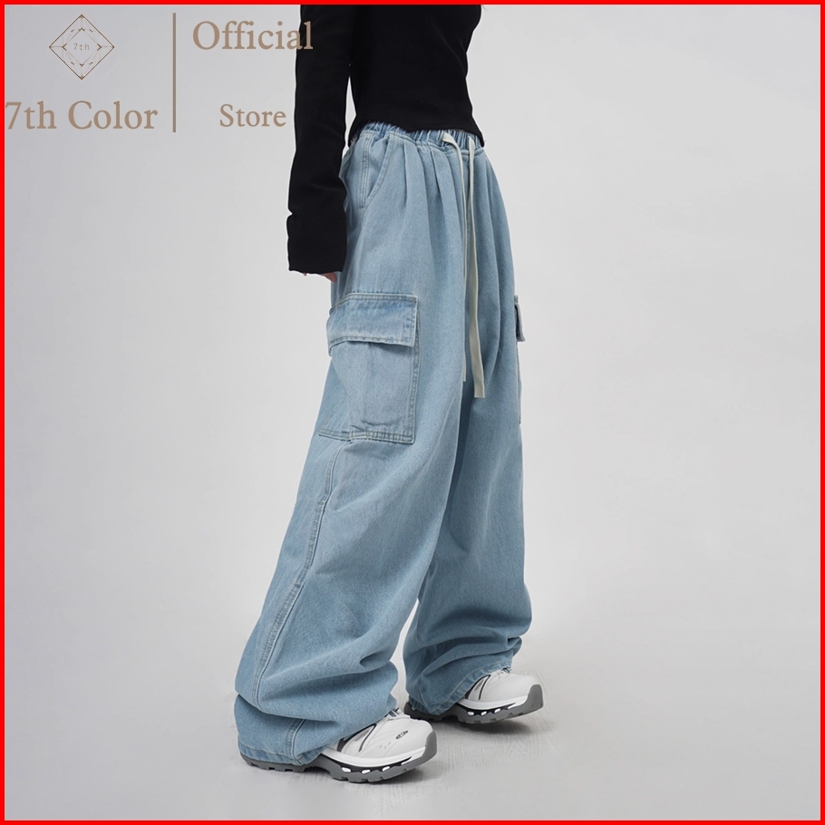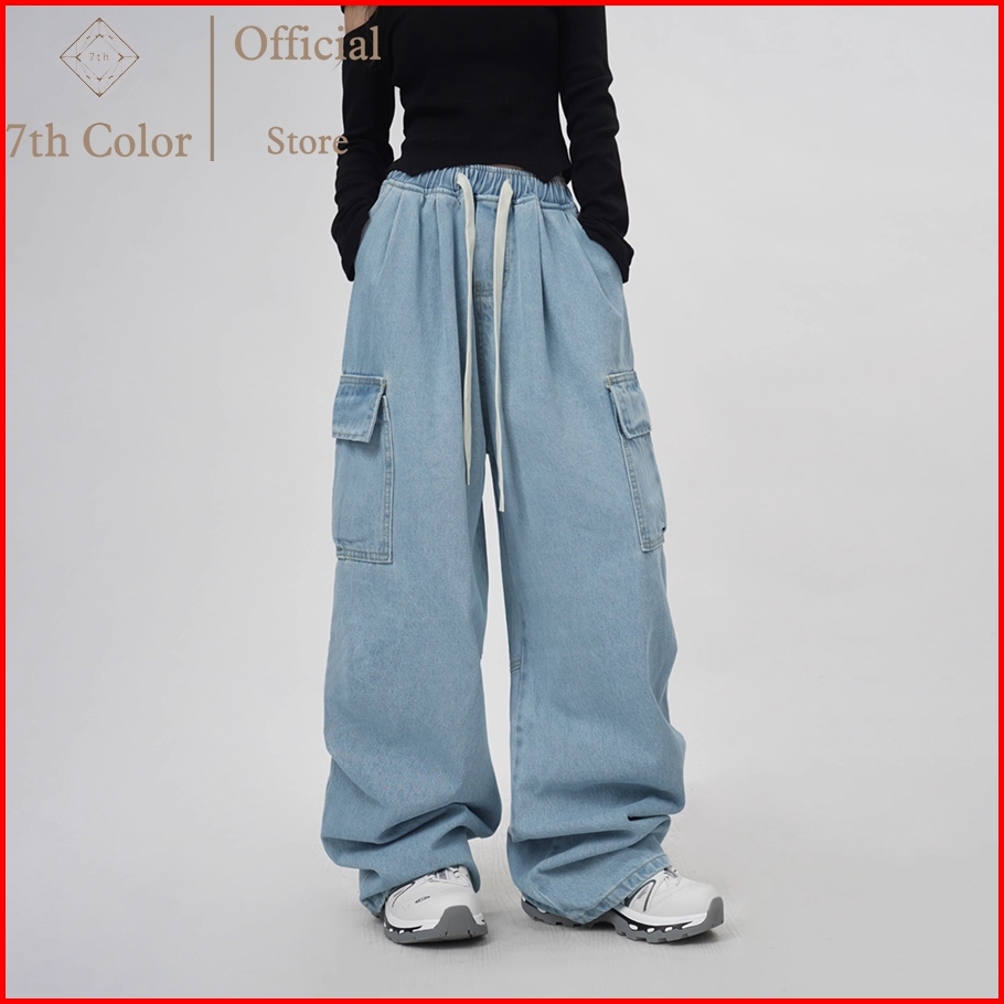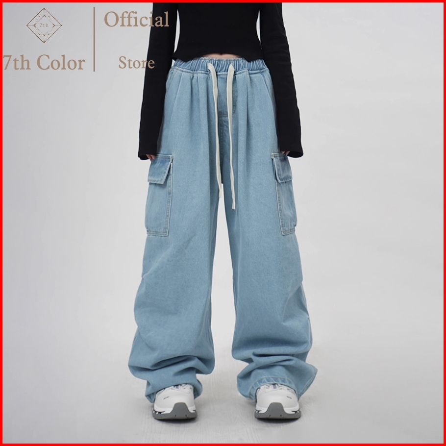 7th Color Ready Kirim Celana Tali Serut Cargo Jeans Panjang Wanita Celana Korean Style Celana Kulot Denim