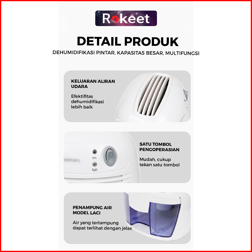 Rokeet Dehimudifier Air Drayer Penyerap Kelembaban Udara Ruangan Kamar Anti Jamur Kapasitas 500 Ml