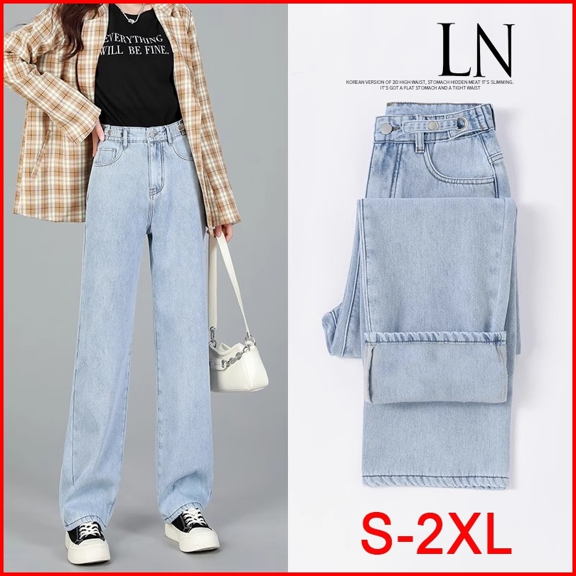 Produk Baru-celana Highwaist Wanita Baggy Jeans Wanita Gesper Pinggang Yang Bisa Disesuaikan