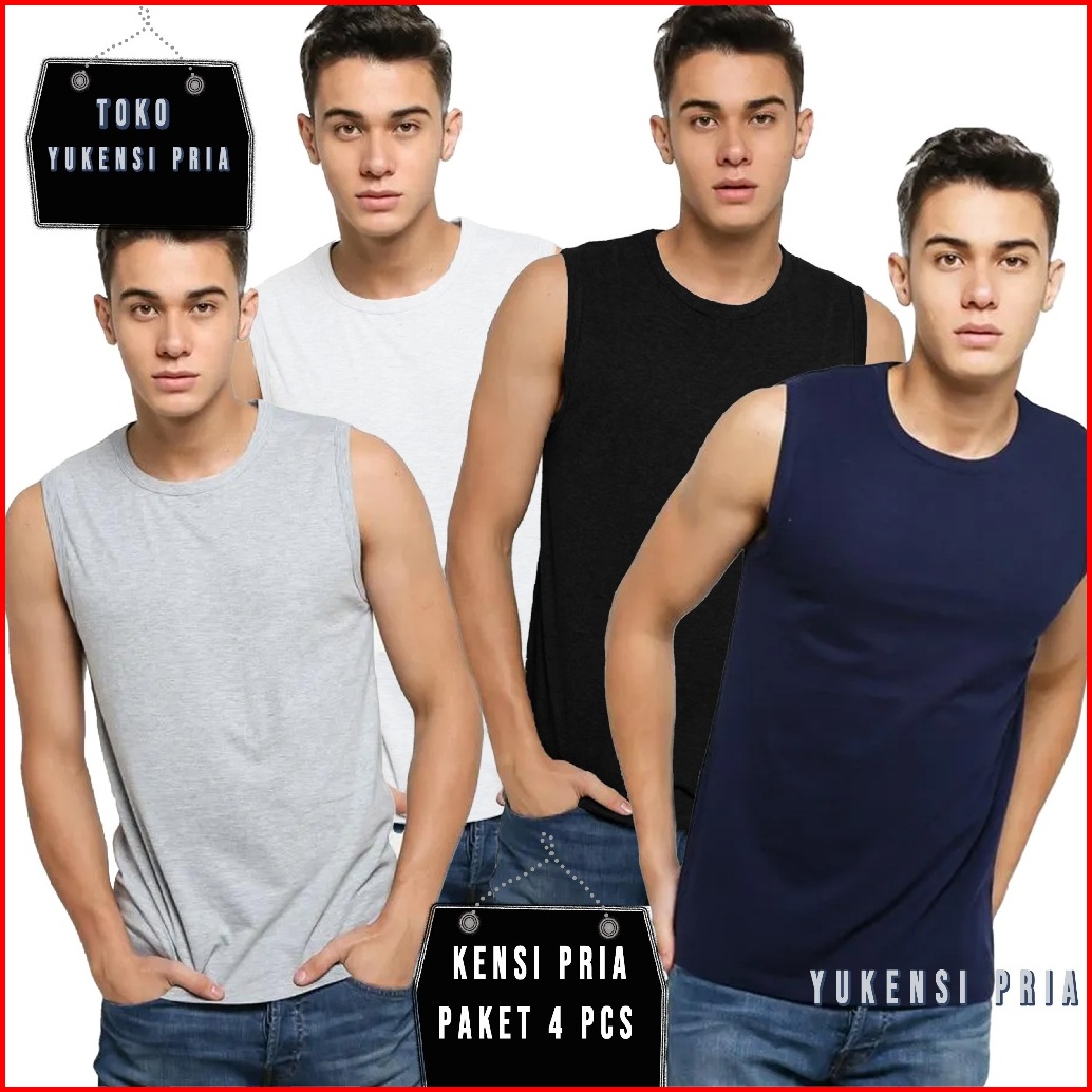 Paket Hemat 4 Pcs Singlet Pria Dewasa Import Slim Fit Kaos Kutang Pres Body Tangtop Cowok Viral