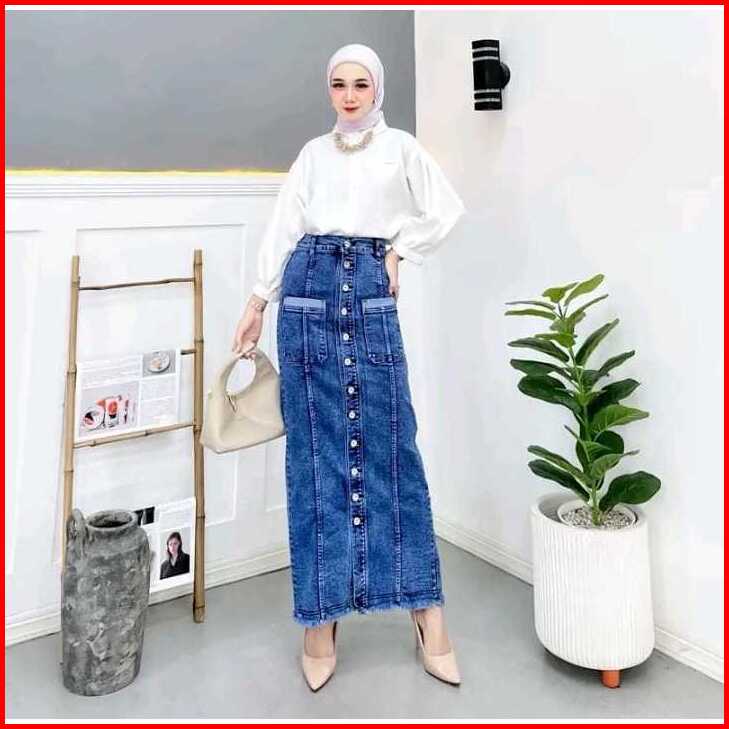 Rok Terbaru Span Full Kancing Panjang Wanita